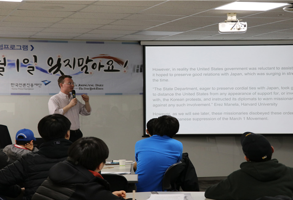 수업을 운영하며 가장 크게 느낀 것은 역사적 사실에 대한 인식 차이였다. 분단 전의 역사적 사실을 예를 들어 수업을 진행했는데 남과 북의 청소년들은 서로 다른 역사 인식을 갖고 있었다. 그중 하나가 3.1운동이었다. 탈북 청소년 몇몇은 3.1운동을 전혀 모르기도 했으며, 몇몇은 김일성의 항일운동과 관련해 알고 있었다. 수업을 진행하며 무엇이 그런 간극을 만들어냈던 것인지, 어떻게 하면 이러한 차이를 줄일 수 있을지 고민했다. 그렇게 한국언론진흥재단의 3.1운동 100주년 기념 기자 체험 프로그램을 진행하게 됐다. 프로그램을 기획하면서 영어 신문의 특성, 즉 외국인들이 많이 구독한다는 점을 중점적으로 고려했다. 그들에게 가장 큰 이슈는 남과 북의 평화겠지만 한민족에게 주어진 과제에 대해서도 전달하고 싶었다. 그래서 주제를 100년 전 남과 북 우리 모두의 역사 3.1운동으로 삼았다. 남과 북은 분단됐고 분단 이후 왕래를 할 수 없었다. 그렇기 때문에 언어와 역사에 대한 인식 또한 교류가 불가능했다. 분단 전 3.1운동이 한반도 전 지역에서 진행됐음에도 불구하고 한쪽의 역사로만 남아 있었다. 역사를 함께 알아가는 과정 또한 중요하다고 생각했다.