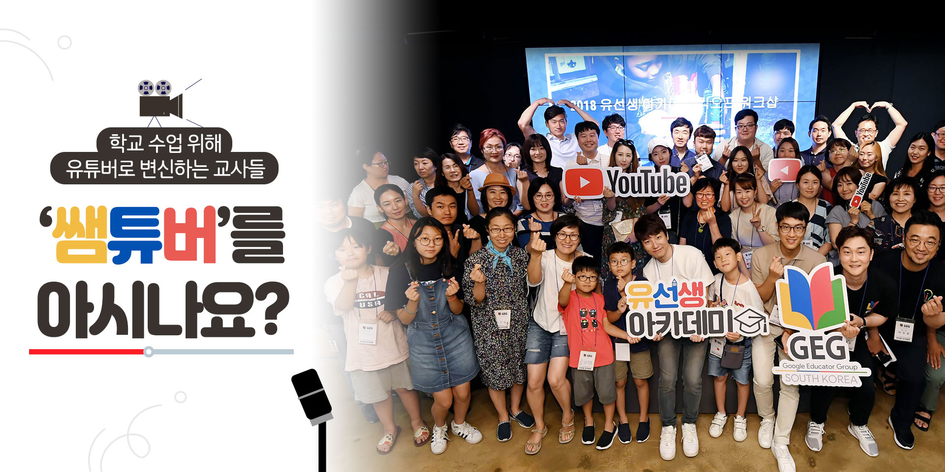 현재 유튜브 본사에서 가장 초점을 맞추고 있는 부분은 바로 ‘러닝(Learning)’ 즉 배움입니다. 여기서 배움에 관한 콘텐츠는 학습적인 부분에 국한되지 않고 ‘무언가를 배우고 나눈다’에 초점이 맞추어져 있습니다. 그래서 전 세계적으로 유튜브를 통해 ‘무엇을 배운다’라는 것을 주제로 다양한 프로젝트가 진행되고 있습니다. 우리나라에도 유튜브 러닝랩을 비롯해 여러 가지 프로젝트가 있는데 그중 대한민국 유튜브 팀에만 있는 러닝 프로젝트가 있습니다. 바로 ‘유선생 아카데미’입니다. 대한민국은 어느 나라보다도 공교육의 질이 높고 또 교사의 역량이 우수할 뿐 아니라 학교 현장에서 많은 시도가 이루어지고 있습니다. ‘유선생 아카데미’는 구글 코리아와 ‘구글 에듀케이터 그룹 사우스 코리아(Google Educator Group South Korea)’가 손 잡고 교사 크리에이터/큐레이터들이 교육을 위해 유튜브를 활용할 수 있도록 돕는 프로젝트입니다.