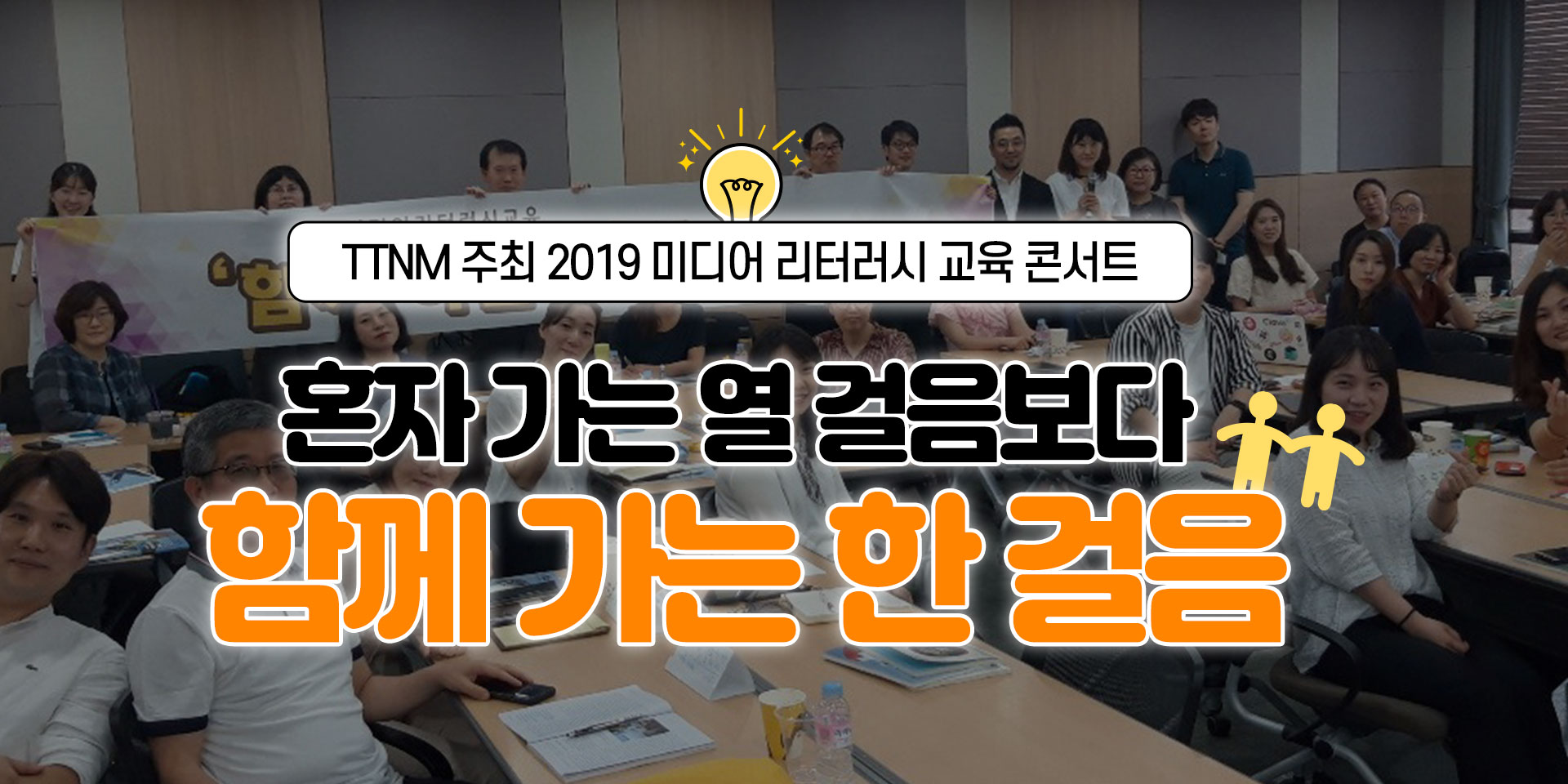 미디어교육에 관심 있는 교사 간 네트워크 형성을 위해 가장 필요한 것은 선생님들을 위한 소통의 자리라고 생각했다. 물론 교육청이나 한국언론진흥재단에서 이런 자리를 만들기 위해 많은 노력을 하고 있지만 그보다 먼저 교사들의 자발적인 모임이 있어야 한다고 TTNM 회원인 구산중 주민정 선생님이 주장했다. 나머지 회원들도 이 의견에 공감했다. 그래서 우리는 미디어교육을 위한 소통의 시간으로 2019 미디어 리터러시 교육 콘서트 ‘함께 걸어가는 우리’를 기획했다.