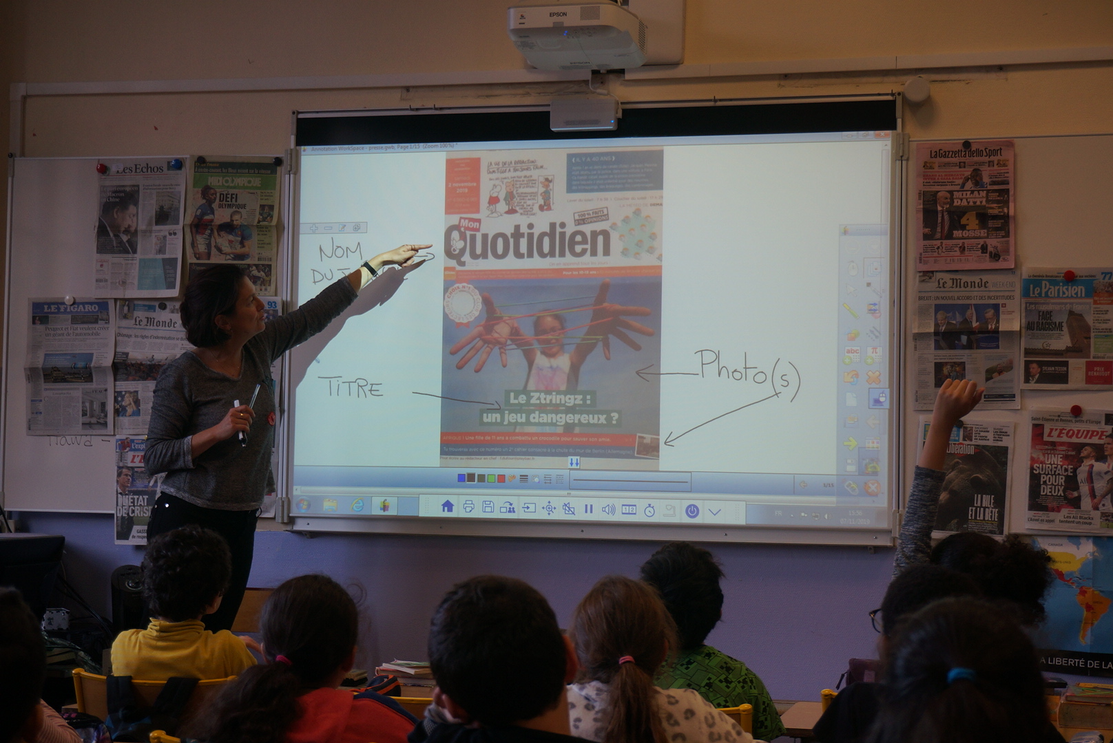 에콜 펠릭스 포르(Ecole Félix Faure) 초등학교 방문은 필자가 초등교사이기 때문에 가장 기대되는 일정이었다. 초등학교 5학년4) 학생들의 수업을 참관했는데, 신문 1면을 읽고, 학생들이 신문 1면을 직접 구성해 보는 수업이었다.