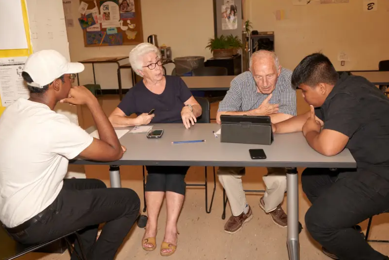 미국 오하이오주 제퍼슨카운티에 소재한 토론토 공공도서관 강의실. 중학생쯤으로 보이는 한 소년이 스마트폰과 태블릿PC를 켜 놓고 백발의 시니어들에게 뭔가를 열심히 설명하고 있다. 패트릭 코스탈레스(Patrick Costales)는 옆자리에 앉은 할아버지에게 태블릿PC의 유튜브 화면을 가리키며 “돋보기 아이콘을 찾아보세요.”라고 말한다. 올해 81세의 미카엘 비안키(Michele Bianchi)는 이내 익숙한 동작으로 돋보기를 클릭하고 다음 설명을 기다린다. 코스탈레스는 곧이어 PC에 내장된 녹음 기능과 방법을 설명하고 비안키 할아버지가 좋아하는 이탈리아 칸초네를 검색하는 방법을 시연했다.