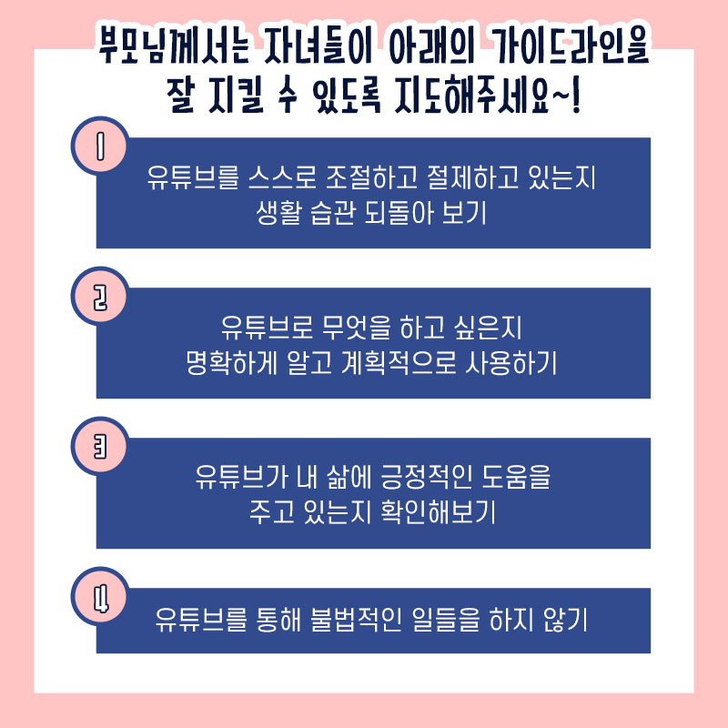 부모님께서는 자녀들이 아래 가이드라인을 잘 지킬 수 있도록 지도해 주세요!