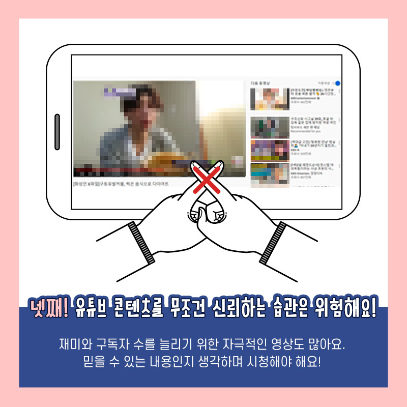 넷째, 유튜브 콘텐츠를 무조건 신뢰하는 습관은 위험해요!