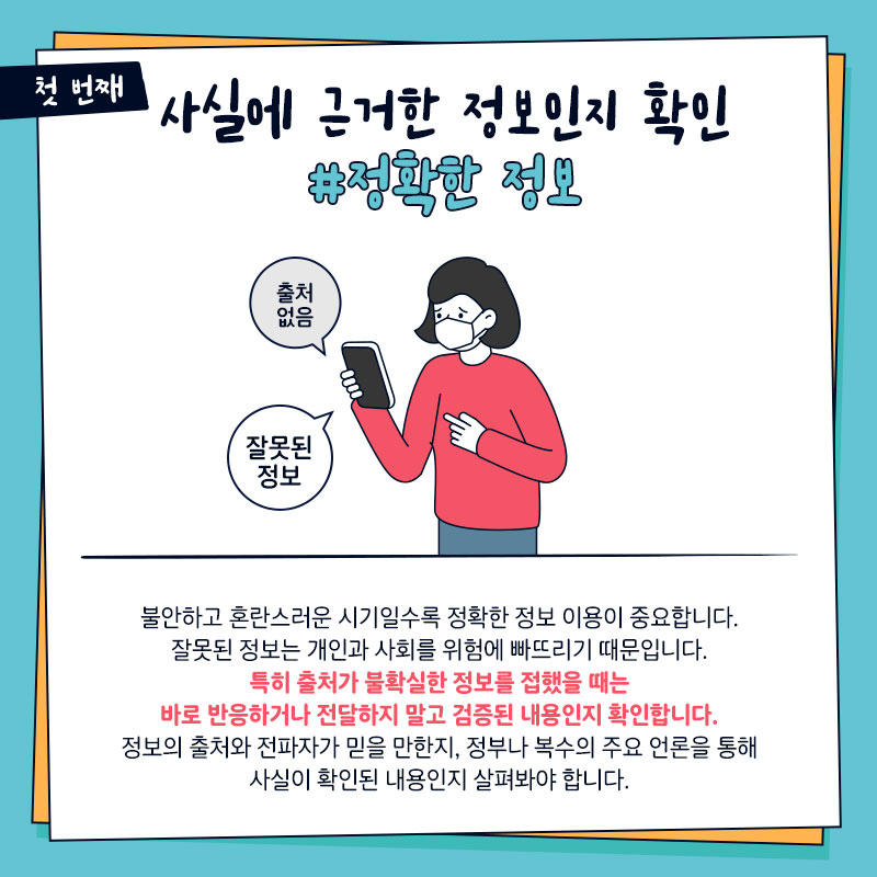 특히 출처가 불확실한 정보를 접했을 때는 바로 반응하거나 전달하지 말고