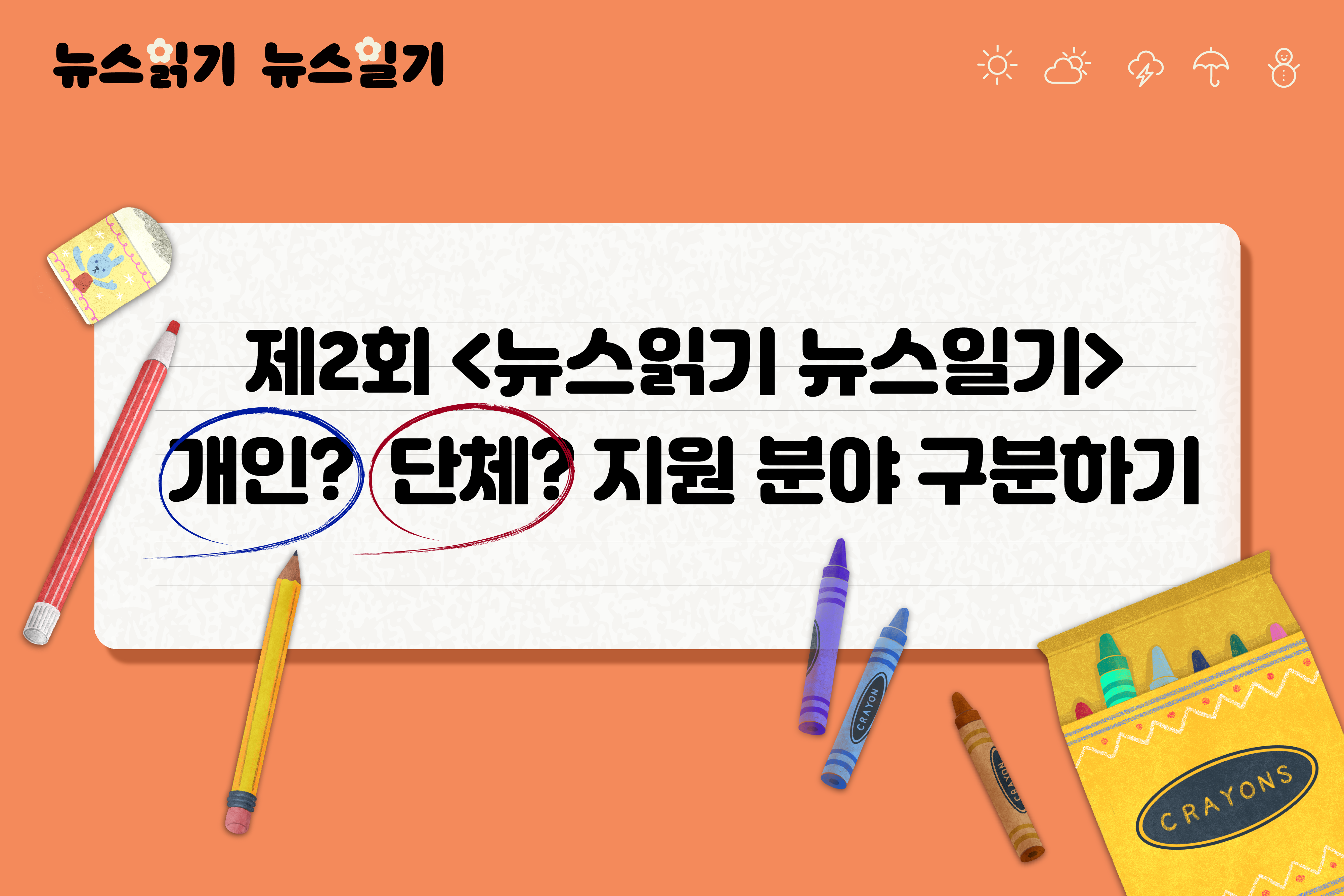 한 권의 일기장을 다 같이 작성한다면 단체 지원, 나만의 일기장을 각자 작성한다면 개인 지원입니다.