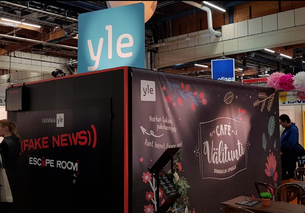미디어 리터러시 관련 부스는 해마다 같은 구역 안에 모여 있다가, 올해는 조금 흩어져 있다고 했다. 저널리즘과 관련한 언론사 및 언론단체 미디어 리터러시 부스는 조금 더 넓은 곳에 공간을 마련했다. 이 가운데 핀란드 공영방송 <윌레(yle)>와 신문협회(Sanomalehtien liito)에 들러 자료를 살펴봤다. 허위정보와 관련한 문제는 핀란드에서도 중요한 쟁점이라, 일간지와 방송사 할 것 없이 비교적 적극적으로 대응하는 편이다. <윌레>의 경우 ‘가짜뉴스 방 탈출 코너’를 기획해 방문자들이 안에 들어가 가짜뉴스를 판별한 뒤 점수를 겨룰 수 있도록 했다. 다른 부스와 달리 이름을 적고 기다려야 할 정도로 붐볐다.
