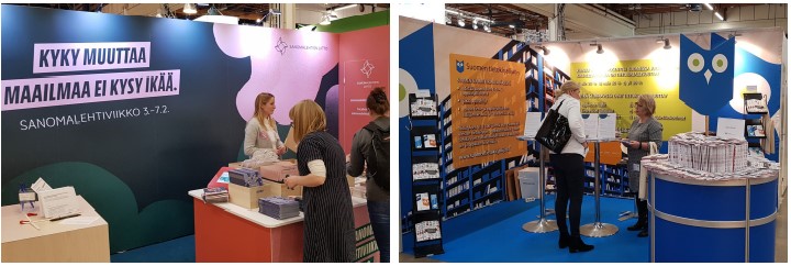 나는 이 밖에 교원노조와 OPH, 교육위원회 산하 독서교육팀(Lukuliike)과 교사북클럽, 세타(SETA, LGBTQ 인권단체) 등에도 들렀다. 핀란드 논픽션작가협회 부스에서 만난 담당자는 논픽션 소설에 담긴 사실(팩트)을 잘 이해하는 능력이 미디어 리터러시와 연결된다고 설명해 기억에 남았다. 논픽션작가협회원 가운데 교사가 많아 교육적으로 활용할 수 있는 추천 도서 목록 및 리터러시 증진 자료를 많이 제공한다고 언급했다.