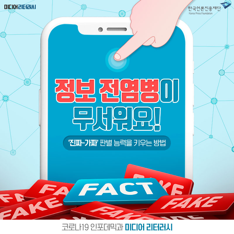 진짜 정보와 가짜정보가 섞여 있는 정보 더미에서 정보 이용 주체 스스로 진짜-가짜를 감식할 줄 아는 능력이 가장 효과 높은 ‘면역력 강화법’이라고 볼 수 있다. 눈에 보이지 않는 바이러스에 대한 대응법으로 손 씻기와 마스크 착용, 사회적 거리두기 등과 같은 개인위생과 면역력 강화가 요구되는 것처럼 인포데믹 상황에서도 개인적 대응 능력이 관건이다. 이는 정보의 진위와 신뢰성을 판별할 줄 아는 미디어 리터러시 능력이다. 2)
