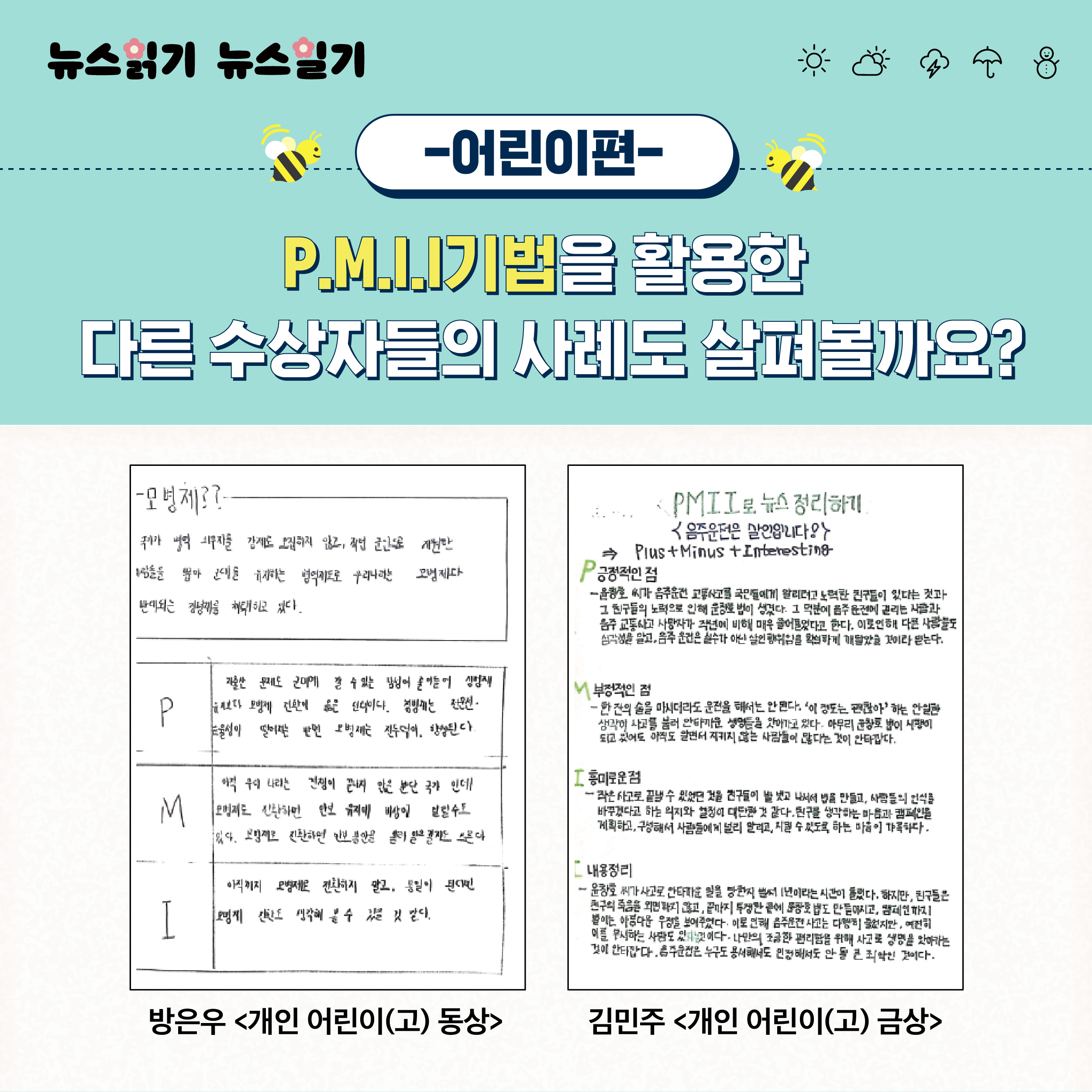 김규희(개인 어린이 고학년 은상) 수상자는 P.M.I.I 기법을 활용했다고 하는데요,