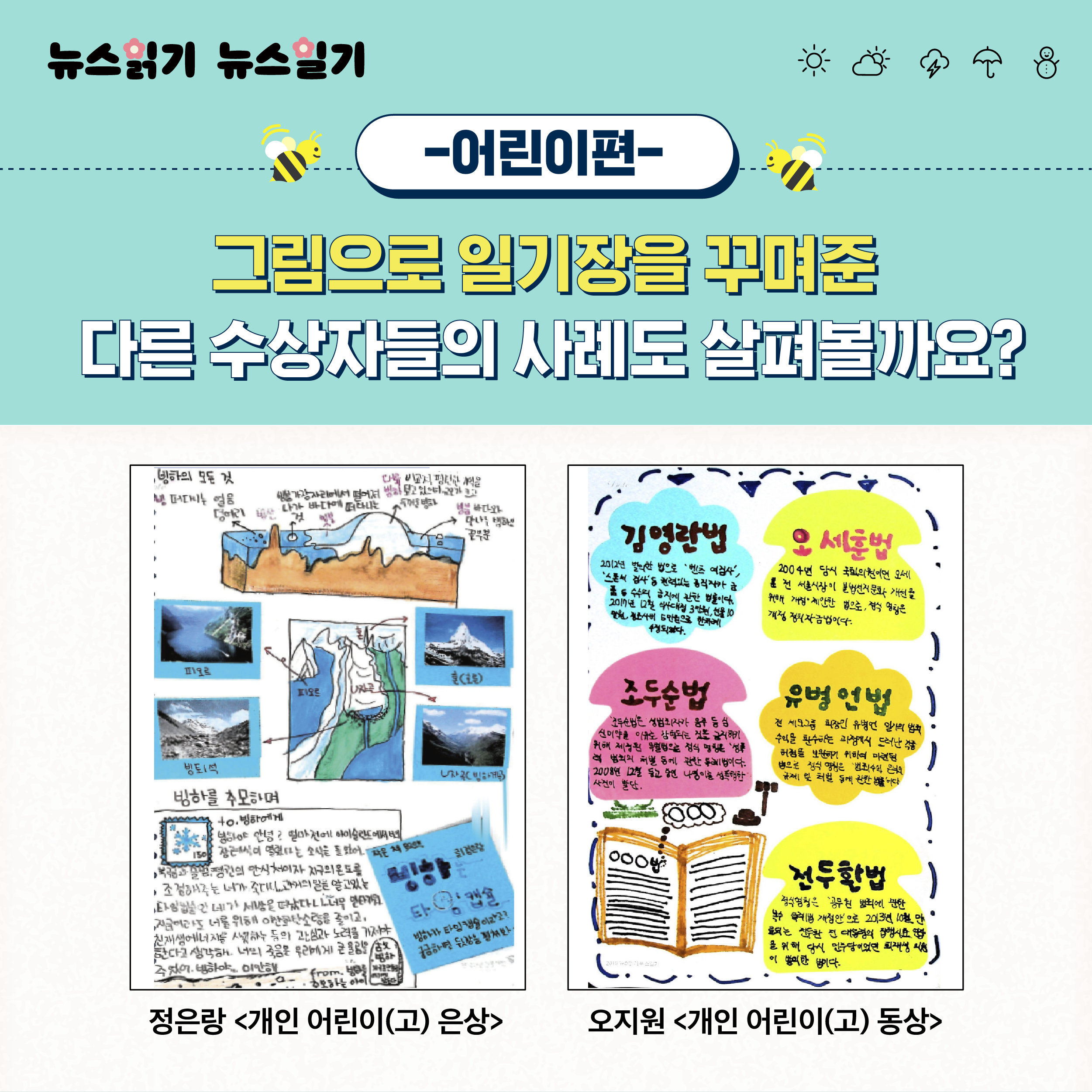 | 제2회 <뉴스읽기 뉴스일기> 제1회 수상자가 전하는 작성 꿀팁 대방출! - 청소년편- (0) | 2020.07.17 |