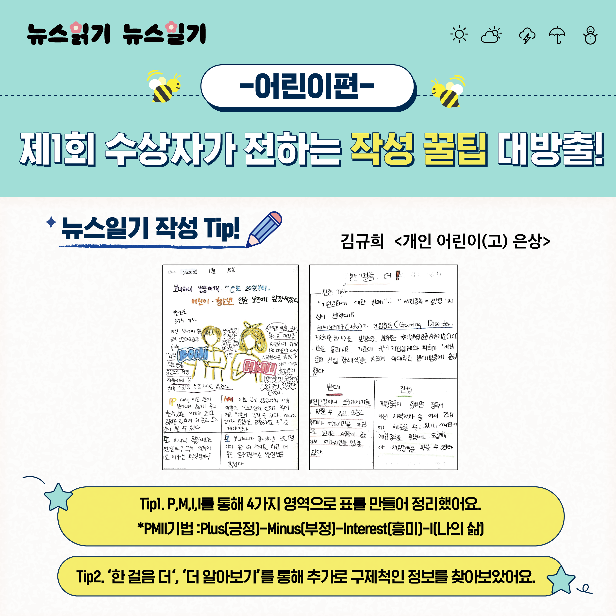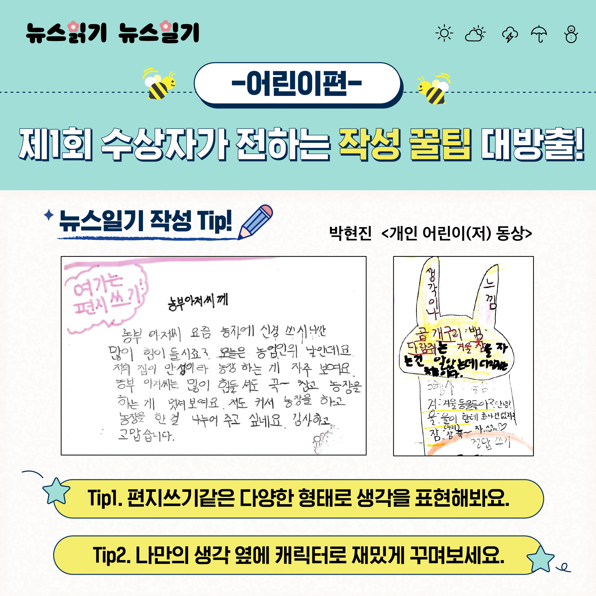 박현진(개인어린이 저학년 동상) 수상자가 전하는 뉴스일기 작성 팁입니다.
