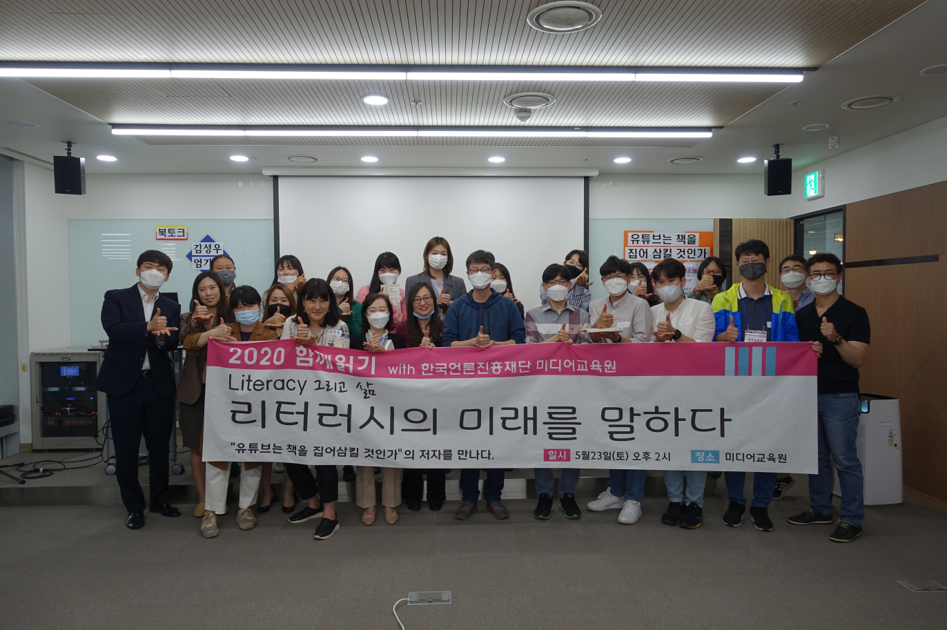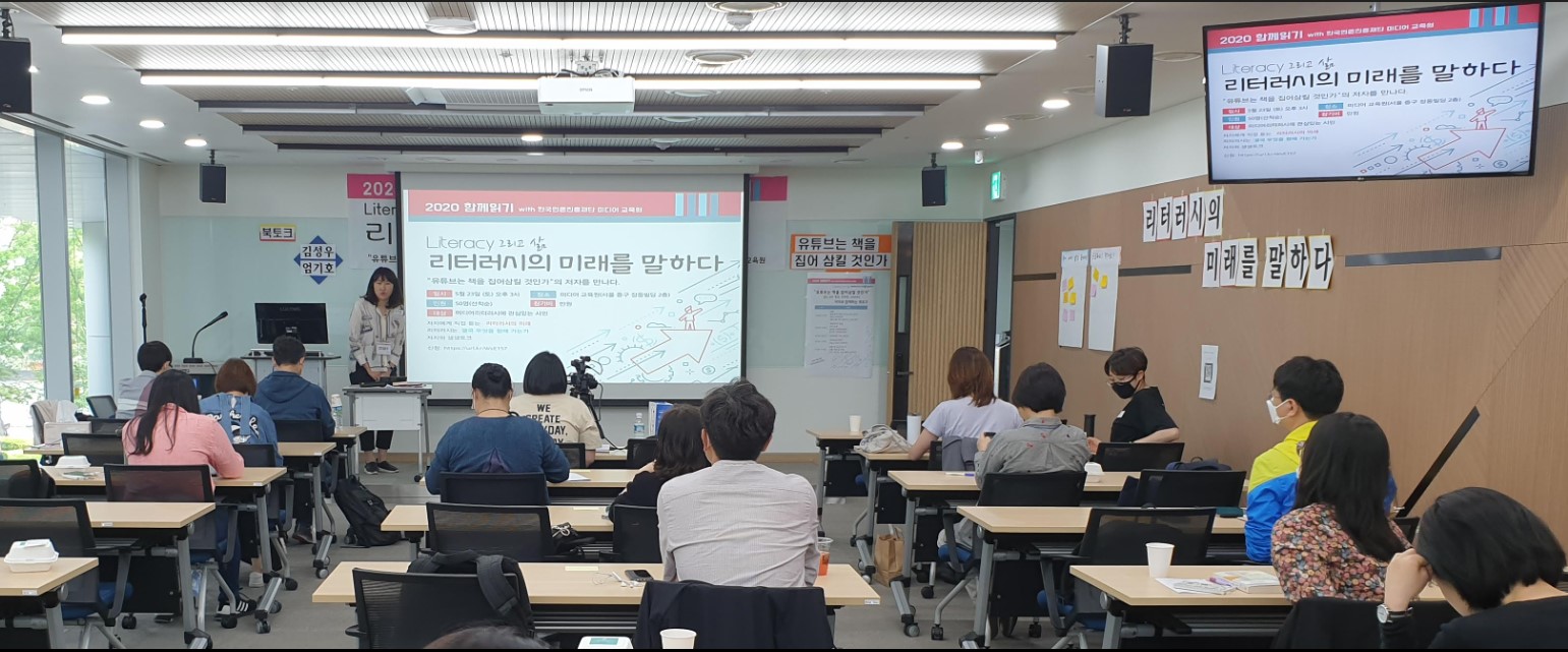 이런 우리가 드디어 ‘리터러시의 미래를 말하다’를 주제로 오프라인 북토크를 진행했다. 모임에서 먼저 《유튜브는 책을 집어삼킬 것인가》를 읽고 온라인 토론까지 마친 후, 5월 개관한 한국언론진흥재단 미디어교육원에서 일반 시민들을 대상으로 북토크를 개최했다.