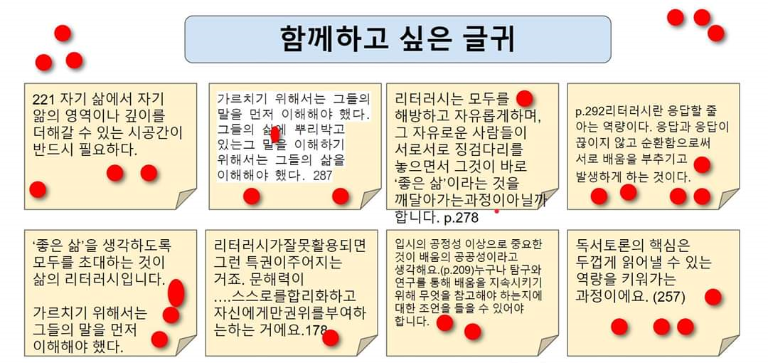 북토크를 마치며, 리터러시의 미래, 리터러시 교육이 진정 나아가야 할 방향에 대해 알 수 있었다. ‘함께읽기’ 모임처럼 ‘서로의 응답과 응답이 끊이지 않고 서로의 배움을 부추기고 발생하는 힘’을 학생들에게 길러주어야 한다고!