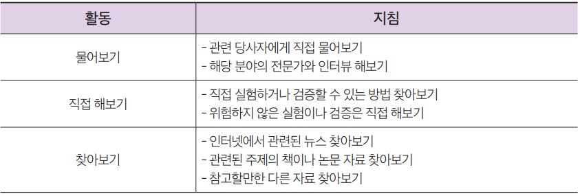(좌) 부평서여중 ‘아로리팀’의 직접 해보기 활동 장면 /(우) 다선초 ‘명탐정 김구’팀의 물어보기 활동 결과. <사진 출처: 필자 제공>