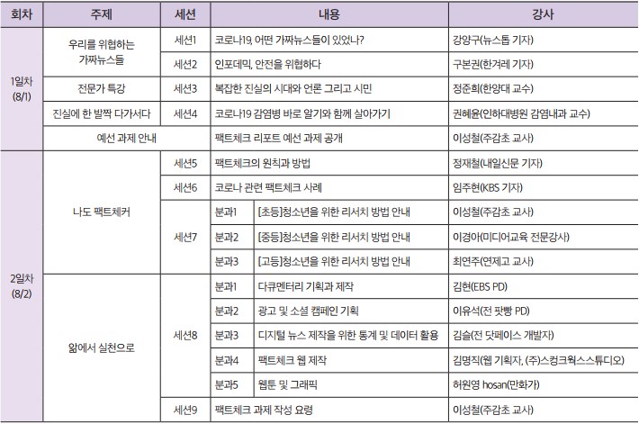 온라인 클래스에서는 팩트체크의 원칙 등 일반적인 방법론뿐 아니라
