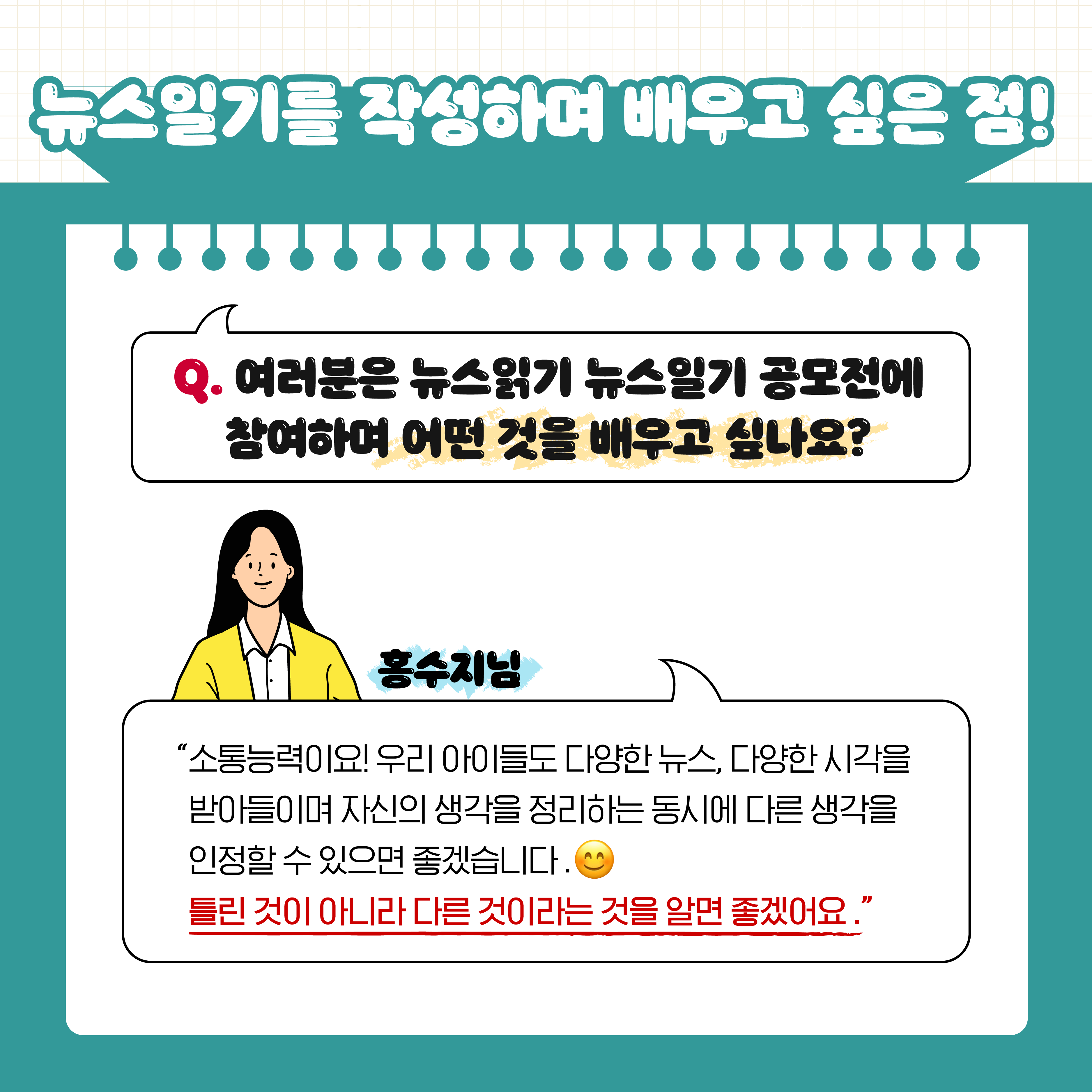 공모전 참가자들이 말하는 뉴스일기를 작성하며 배우고 싶은 점!