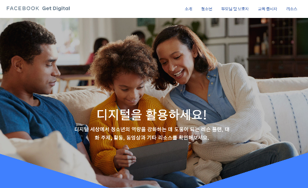 이처럼 청소년, 부모 등 대상별로 나눠 미디어 리터러시 함양 프로그램을 펼쳐왔던 페이스북은 2020년부터 다양한 대상을 포괄할 수 있는 ‘겟 디지털(Get digital)’ 프로젝트를 진행하고 있다. ‘겟 디지털’은 건강한 디지털 커뮤니티를 만들기 위해 필요한 역량 지원을 목적으로 한다. 구체적으로 디지털 시민이 갖추어야 할 덕목을 안내하고, 안전하게 디지털 기술을 사용하는 방법과 온라인 및 오프라인에서 건강한 관계를 맺는 데 도움이 되는 교육 프로그램을 제공하고 있다. 해당 프로그램은 전문가들의 자문과 여러 단체의 협력을 통해서 다양한 교육과 리소스를 제공한다.