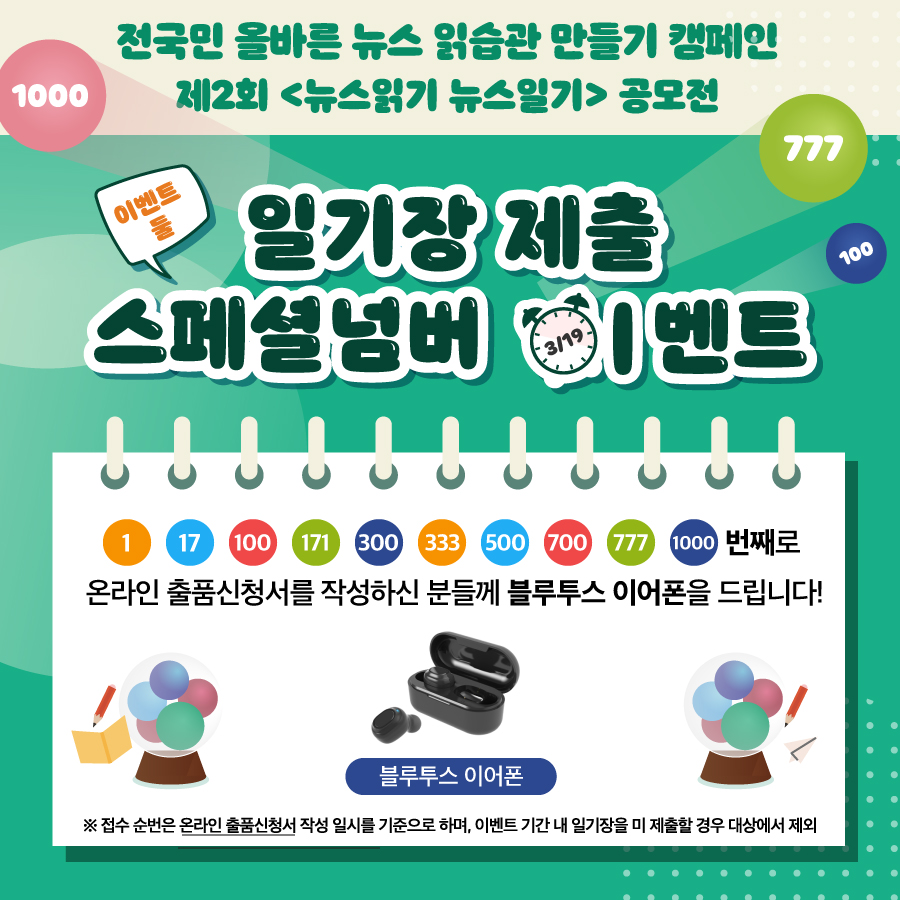 열정이 가득 담긴 뉴스일기장을 제출하고 푸짐한 경품도 받아가세요 :)