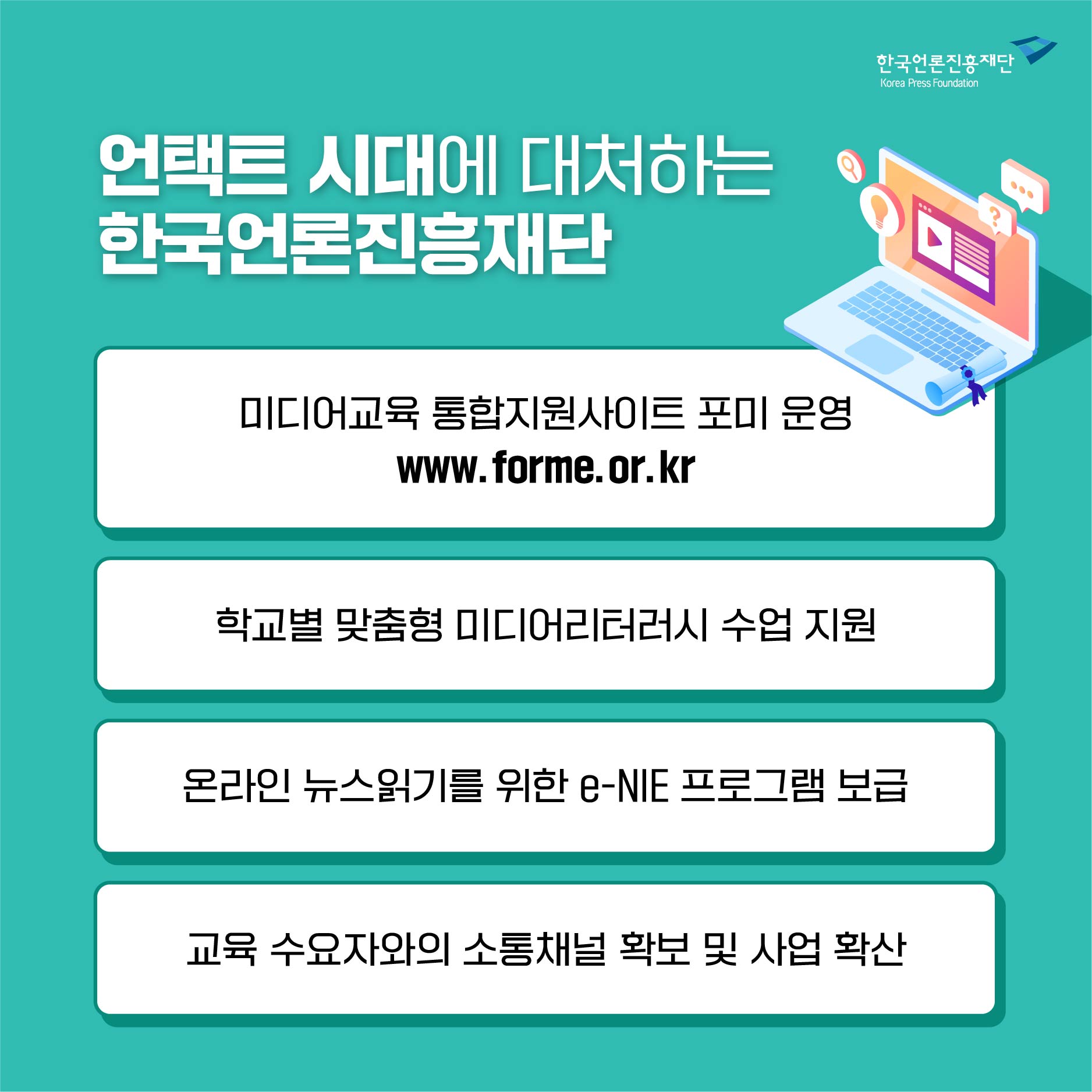 ✔ 미디어교육 통합지원사이트 포미 운영(www.forme.or.kr),