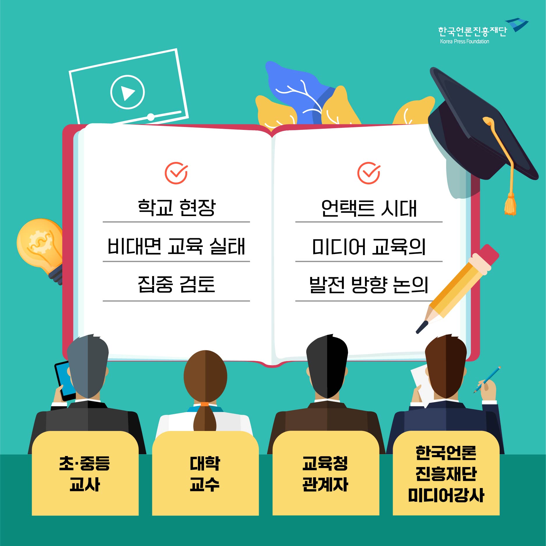 초·중등 교사와 대학교수, 교육청 관계자, 그리고 한국언론진흥재단 미디어강사 등이 패널로 참여해