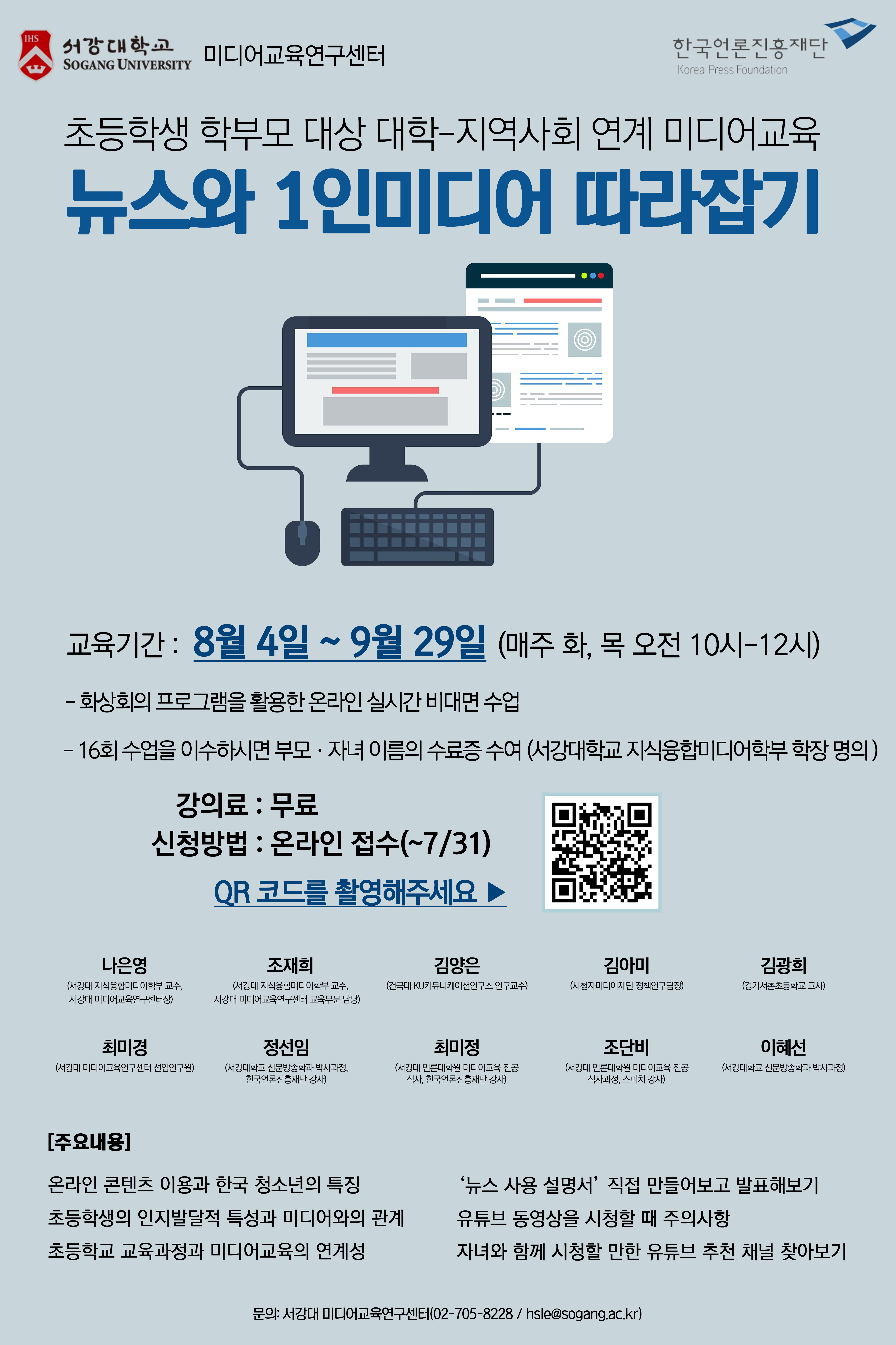 | 국내 유일 미디어교육 교원 연수 전문 기관으로 우뚝! (0) | 2021.08.12 |
