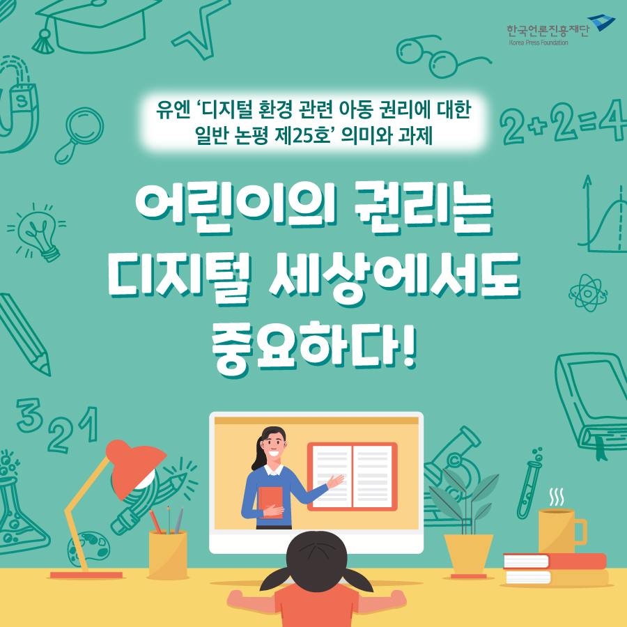 2021년 2월 4일은 디지털 세상에서 살아가는 어린이들에게 특별한 날로 기록될 것이다. 유엔 아동권리위원회에서 ‘디지털 환경 관련 아동 권리에 대한 일반 논평 제25호’를 채택해, 어린이들의 권리가 실제 세상에서뿐 아니라 디지털 세상에서도 존중받고 보호받으며 실현되어야 한다고 권고한 날이기 때문이다.