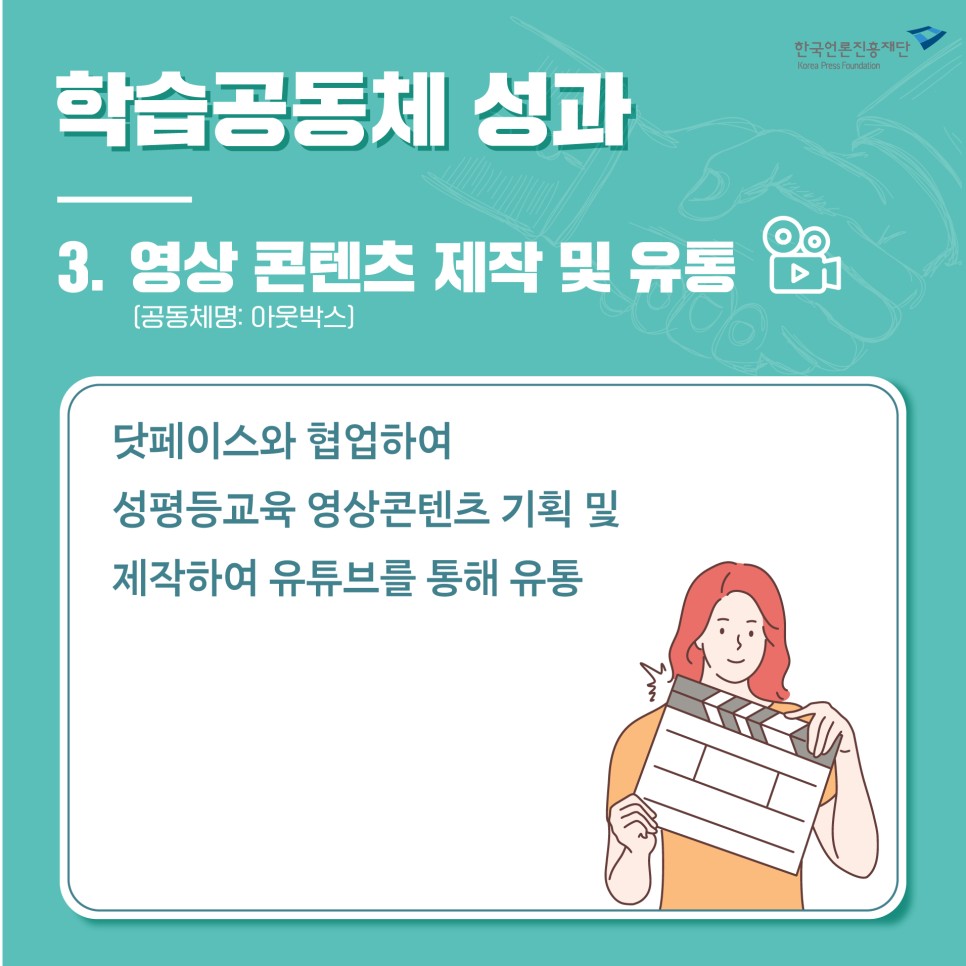 닷페이스와 협업하여 성평등교육 영상콘텐츠 기획 및 제작하여 유튜브를 통해 유통