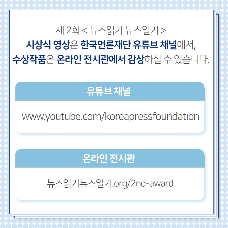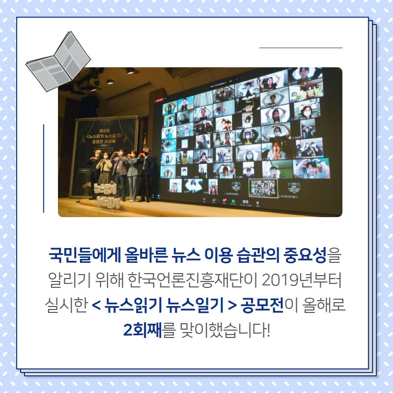 제2회 <뉴스읽기 뉴스일기> 시상식 영상은 한국언론진흥재단 유튜브 채널에서,