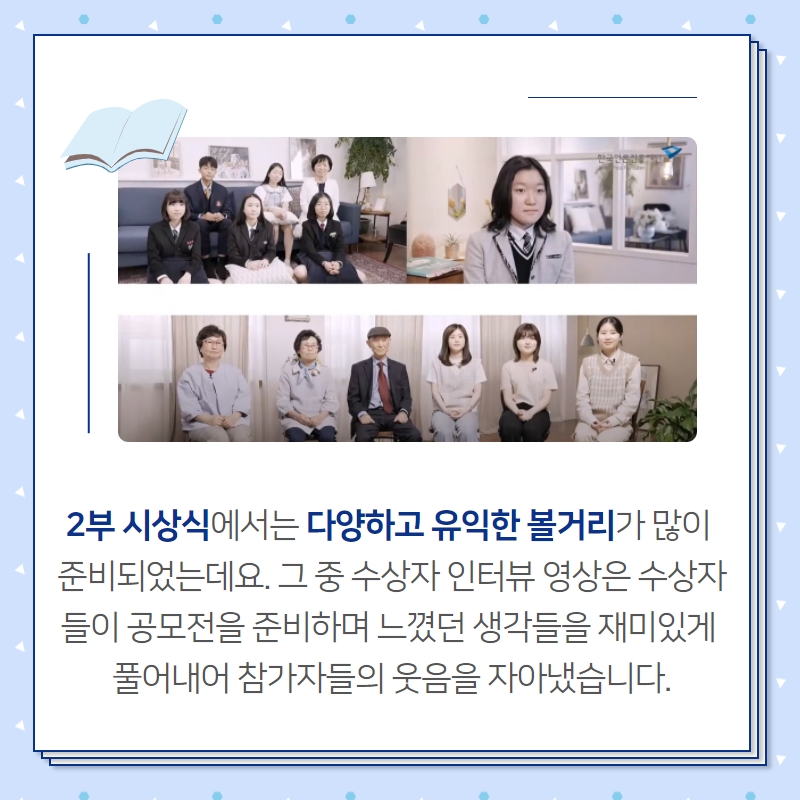 그중 수상자 인터뷰 영상은 수상자들이 공모전을 준비하며 느꼈던 생각들을