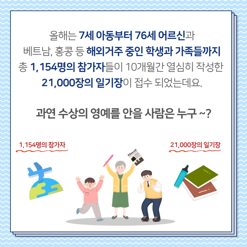 총 1,154명의 참가자들이 10개월간 열심히 작성한 21,000장의 일기장이 접수되었는데요.