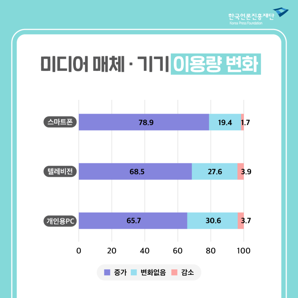 국민의 미디어 이용이 전반적으로 늘어났습니다.