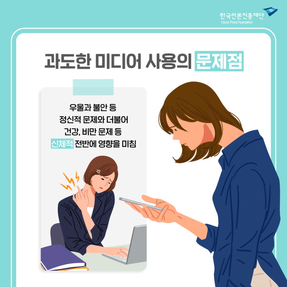 과도한 미디어 사용은 우울, 불안, 번아웃 증후군 등 정신적인 문제와 더불어