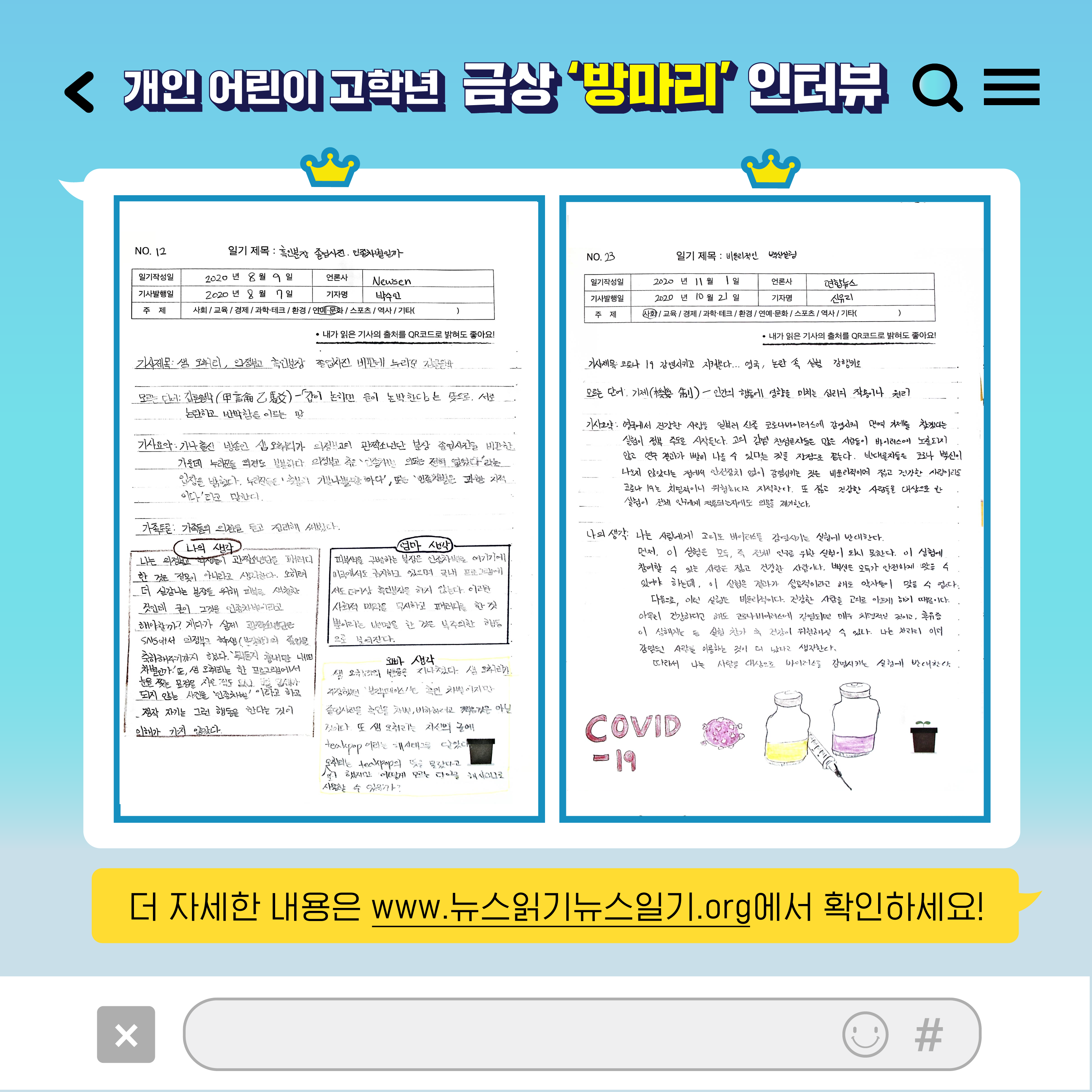 개인 어린이 고학년 금상 방마리 어린이의 뉴스일기 살펴보기!