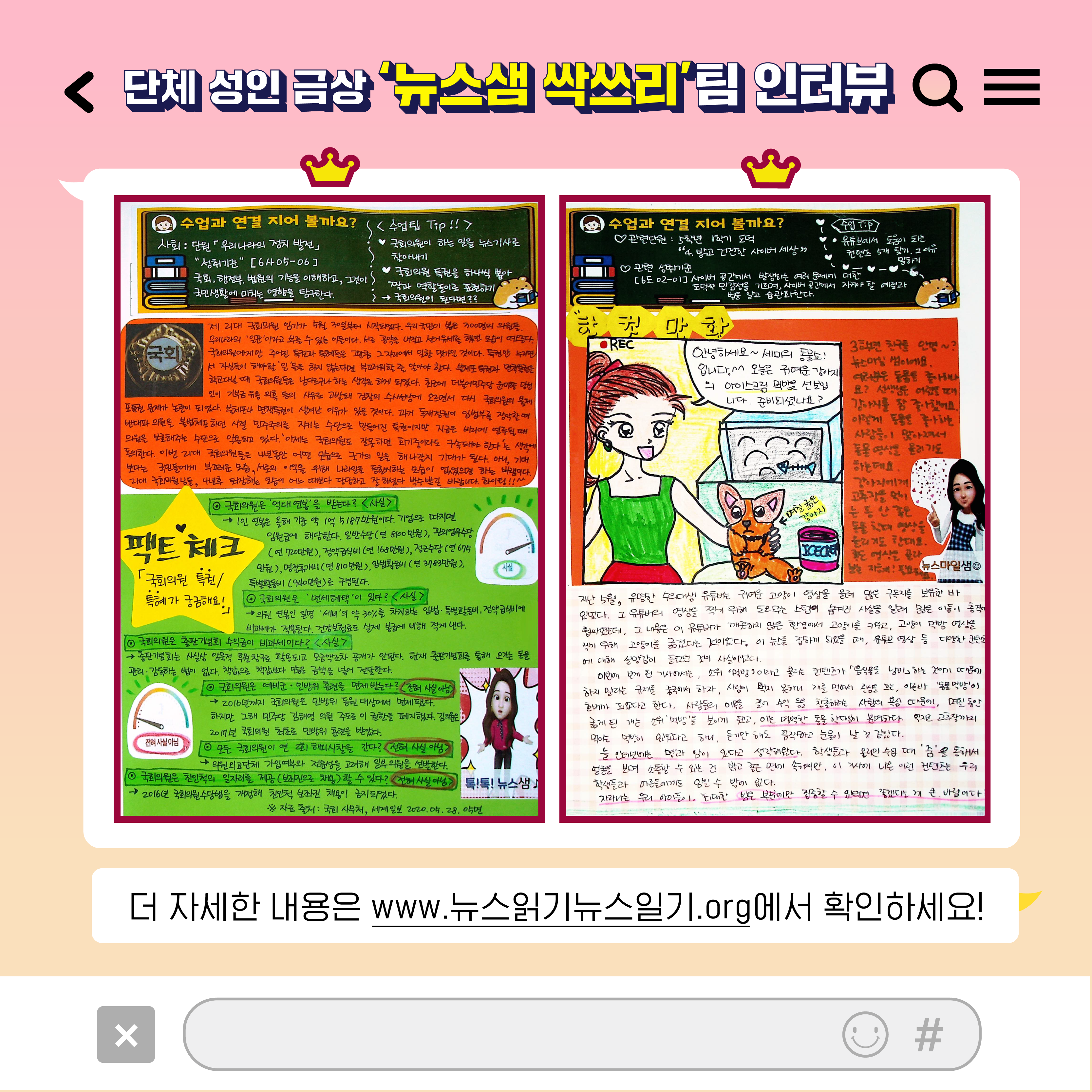 단체 성인 금상 ‘뉴스샘 싹쓰리’ 팀의 뉴스일기 살펴보기!