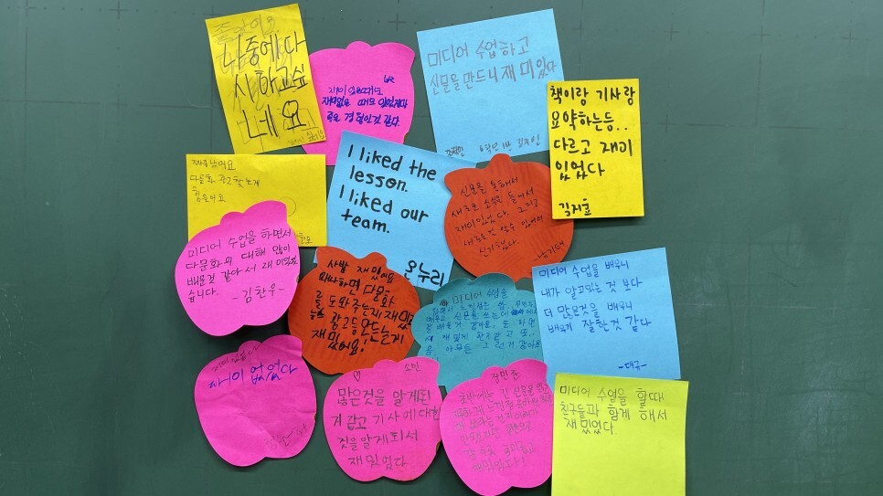 신문 제작은 기대 이상의 효과를 가져왔다. 김찬우 학생이 또박또박 포스트잇에 쓴 “미디어 수업을 하면서 다문화에 대해 많이 배운 것 같아서 재미있었다”는 소감에서 진심이 느껴졌다. 사밥 학생은 “재밌어요, 왜냐하면 다문화를 도와주는 게 재밌고, 뉴스 광고 등 모든 게 재밌어요. 무엇보다도 친구들이 나한테 궁금한 점을 물어봐 줘서 좋아요.”, 온누리 학생은 “친구들과 함께 하니 좋아요. 우리 팀이 좋아요”라고 소감을 말했다. 이들의 소감을 곱씹어 보면서 매우 특별하다고 생각했다. 온누리 학생은 친구들로부터 관심과 질문을 받으며 자신이 중심이 됐던 그 시간이, 그 경험이 정말 좋았을 것이다. 아마도 ‘이제 진짜 내가 친구가 되는구나!’ 하는 기분이 아니었을까? 한국어에 서툴기 때문에 친구들에 기대어 수업에 참여할 수밖에 없던 아이들은 주체적으로 많은 말을 하고, 친구들이 자신의 이야기에 귀 기울여주는 그 시간이 좋은 듯했다. 신문 제작 시간은 예전과는 달리 들뜬 분위기였다. “나중에 다시 하고 싶어요.” 간결한 이 한마디 소감이 미디어 수업을 이어가야 하는 진정한 이유일 것이다.