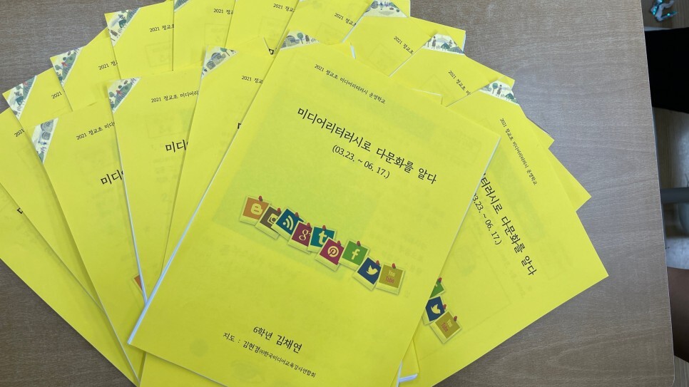 마지막 시간에는 아이들이 1차시부터 했던 결과물을 책자로 묶어 선물했다. 낱장으로 여기저기 나뒹굴었을지도 모르는 활동 결과물을 한데 묶어 돌려주자 아이들은 호기심 가득한 눈빛으로 활동지를 한 장 한 장 넘겨보았다.