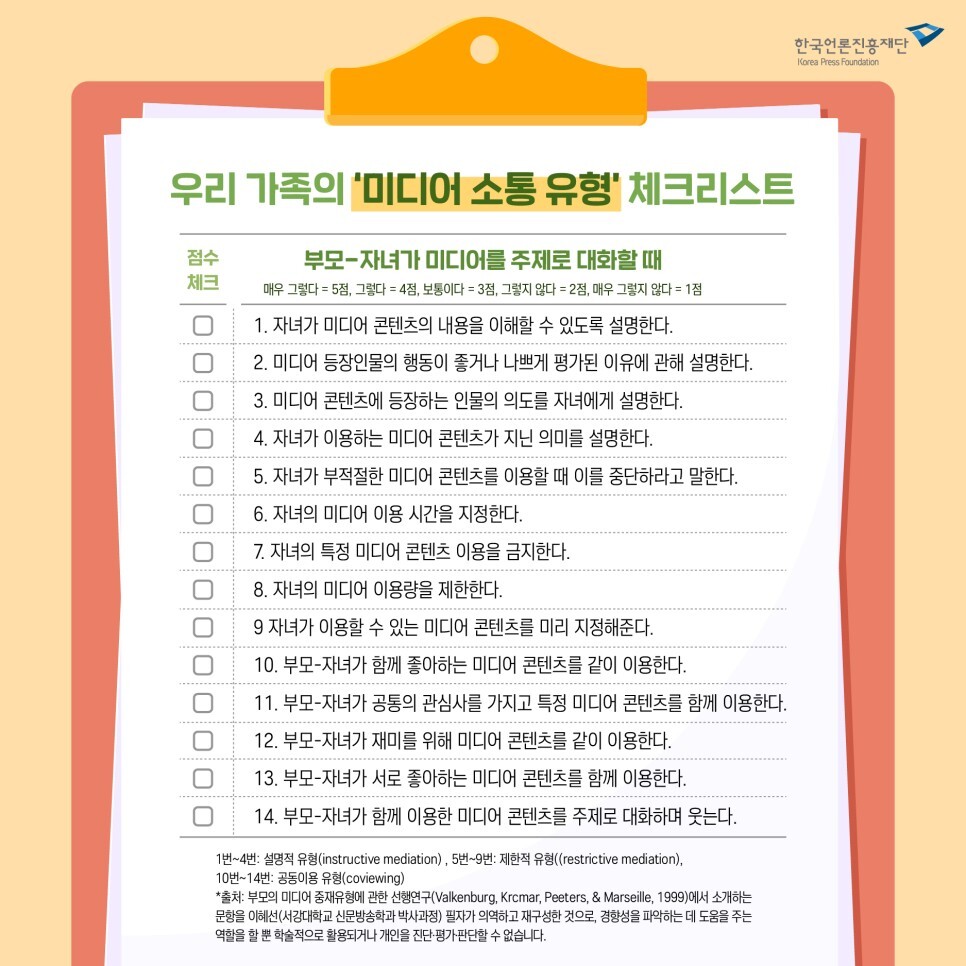우리 가족의 ‘미디어 소통 유형’ 체크리스트!