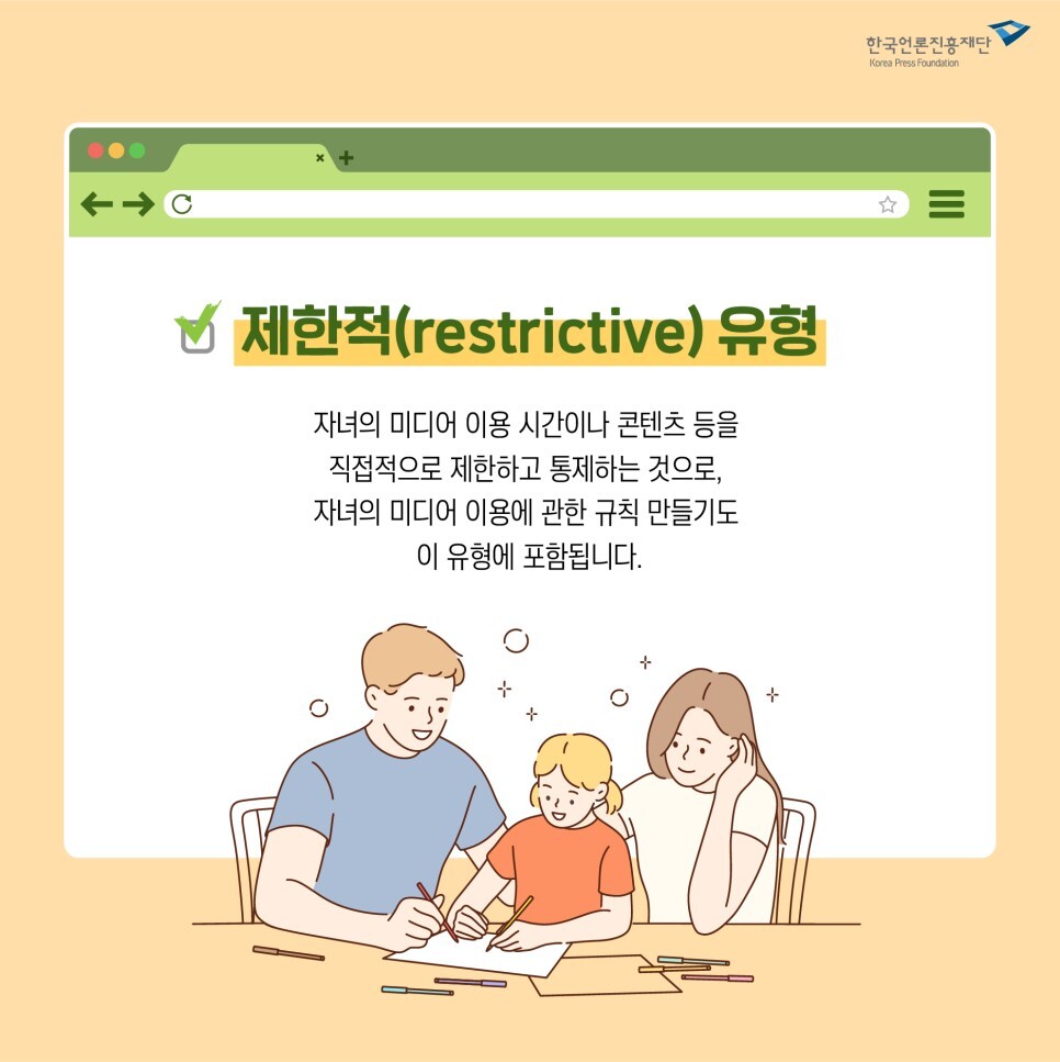 자녀의 미디어 이용 시간이나 콘텐츠 등을 직접적으로 제한하고 통제하는 것으로,