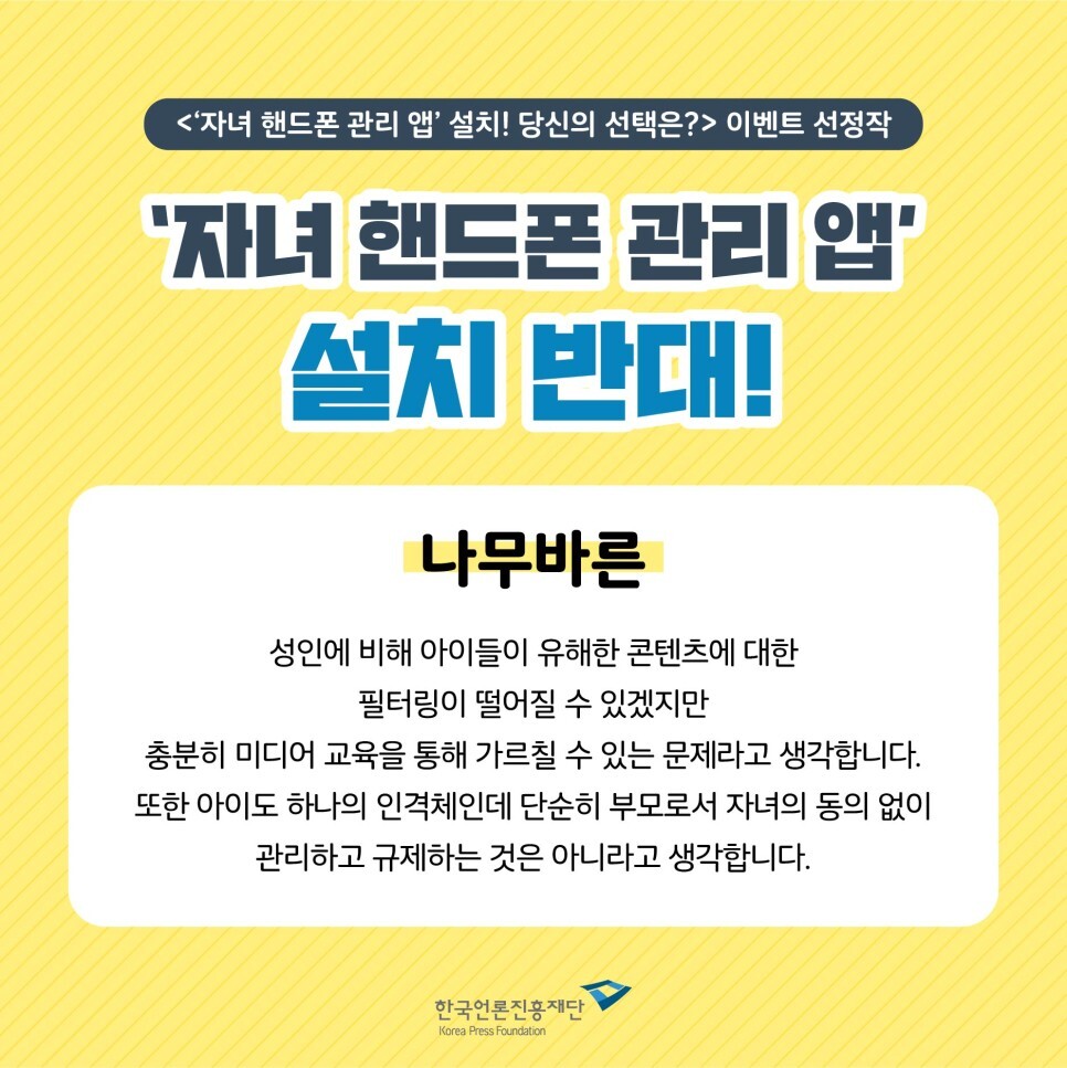어려움이 있기 때문에 관리 앱 설치로 어른들이 도와줘야 한다고 생각합니다.