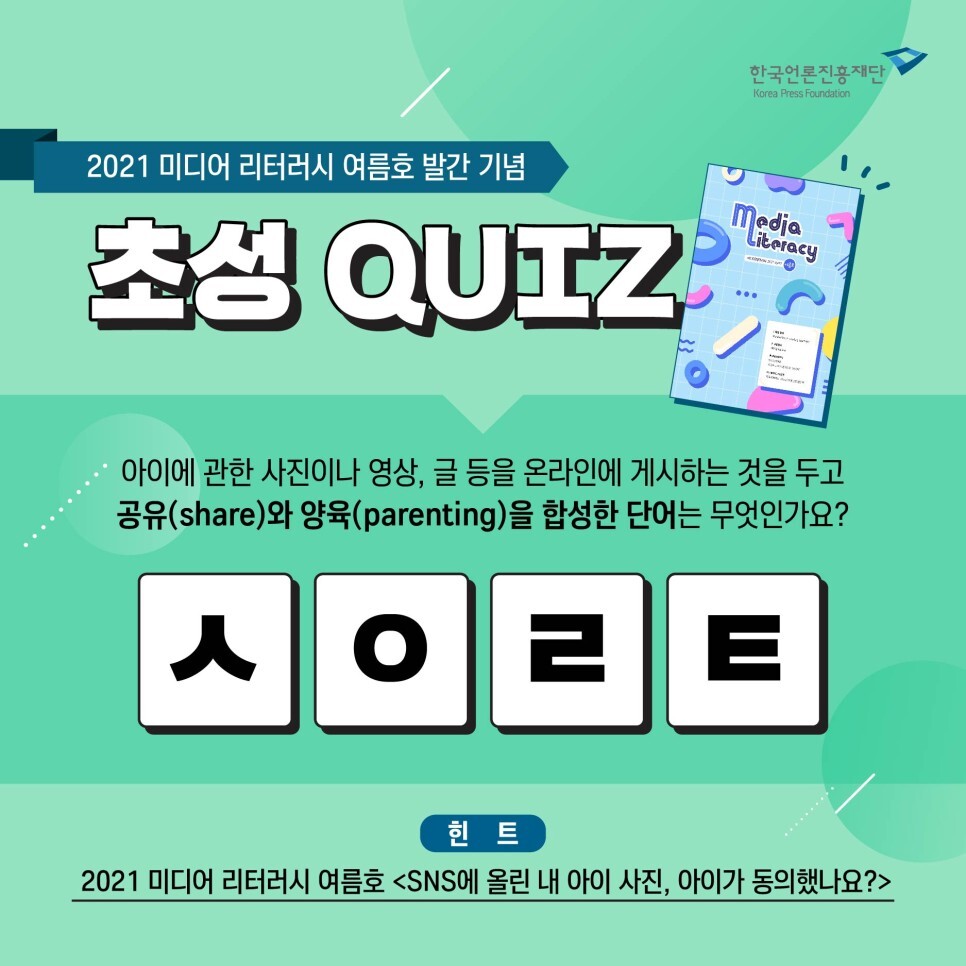 2021 미디어 리터러시 여름호 발간 기념 초성 QUIZ 이벤트!