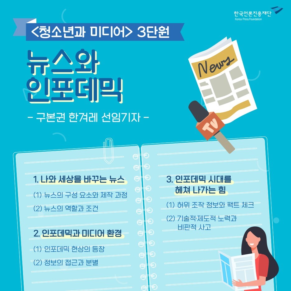 <청소년과 미디어>의 3단원은 뉴스와 인포데믹입니다.