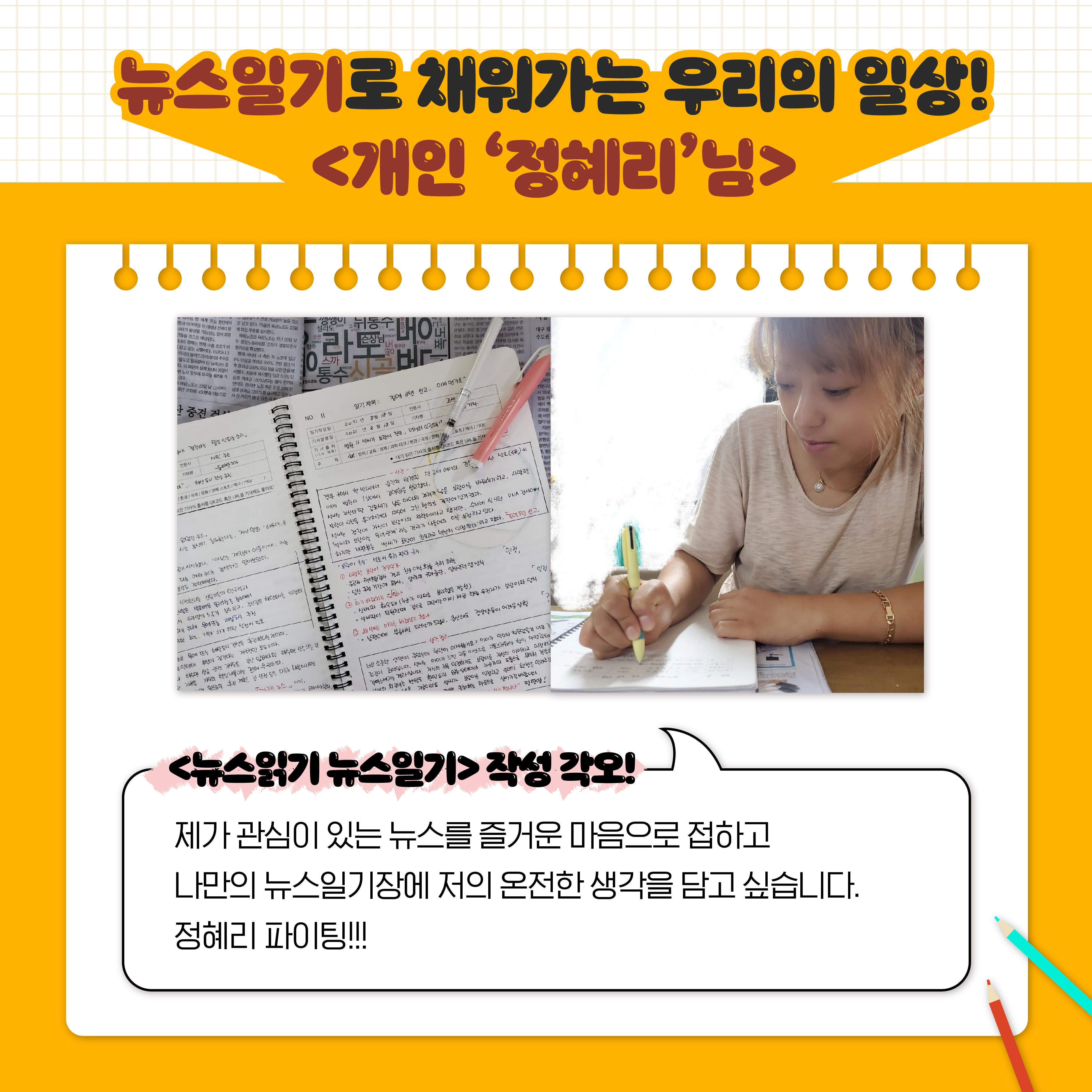 뉴스일기로 인해 펜을 오랜만에 잡을 수 있어서 행복하시다네요~!