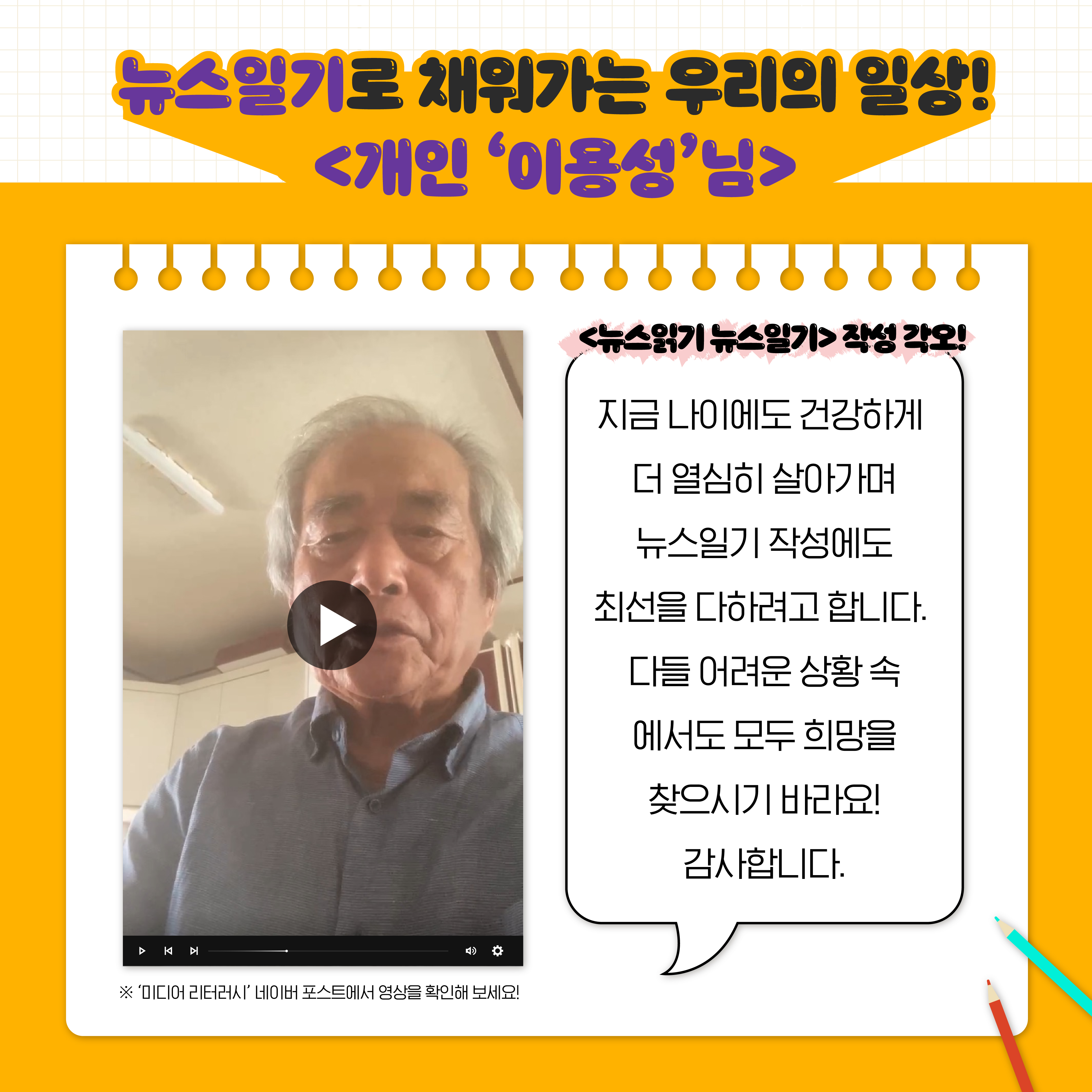 이용성 어르신께서는 뉴스일기를 열심히 작성하는 사진뿐만 아니라
