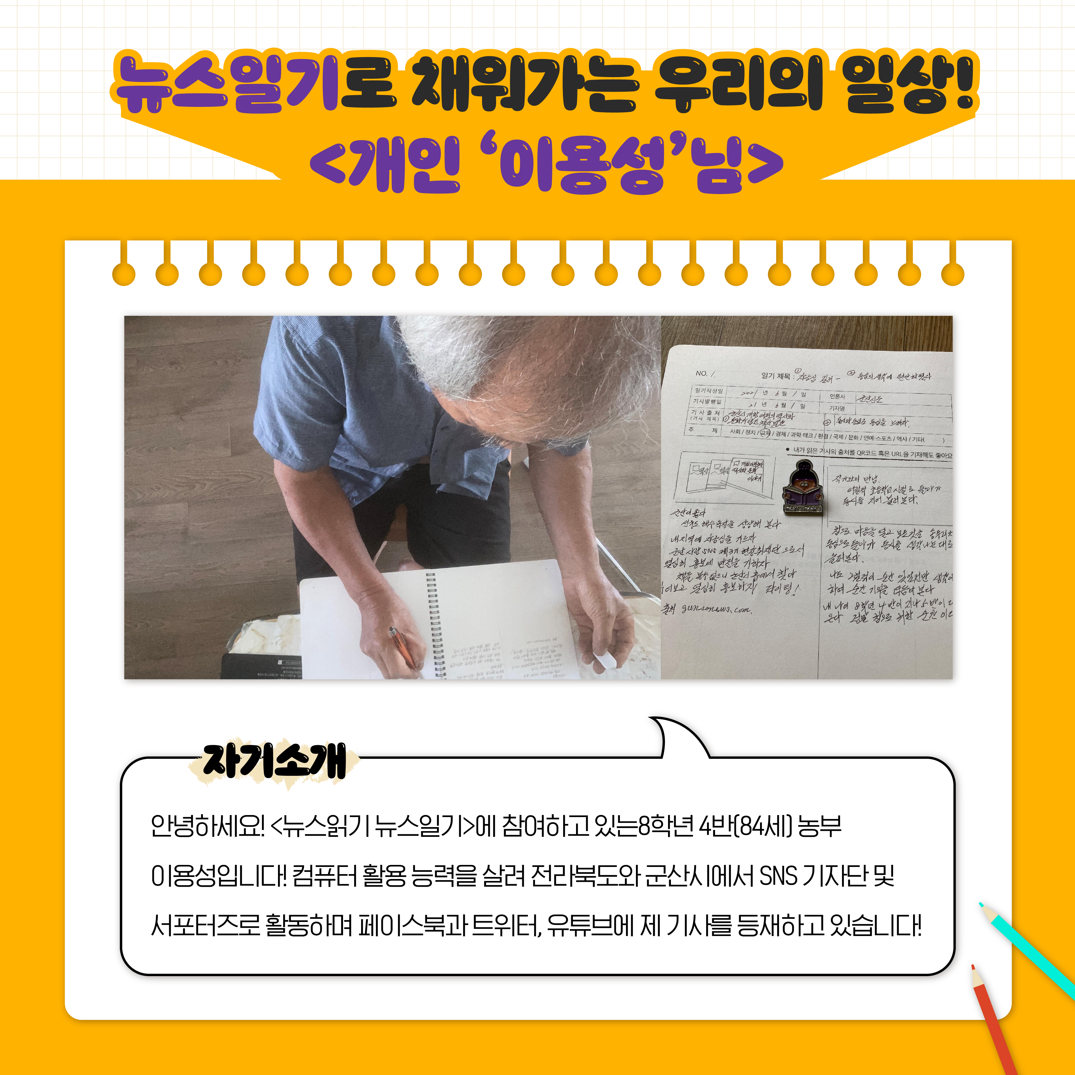 이용성 어르신께서는 뉴스일기를 열심히 작성하는 사진뿐만 아니라