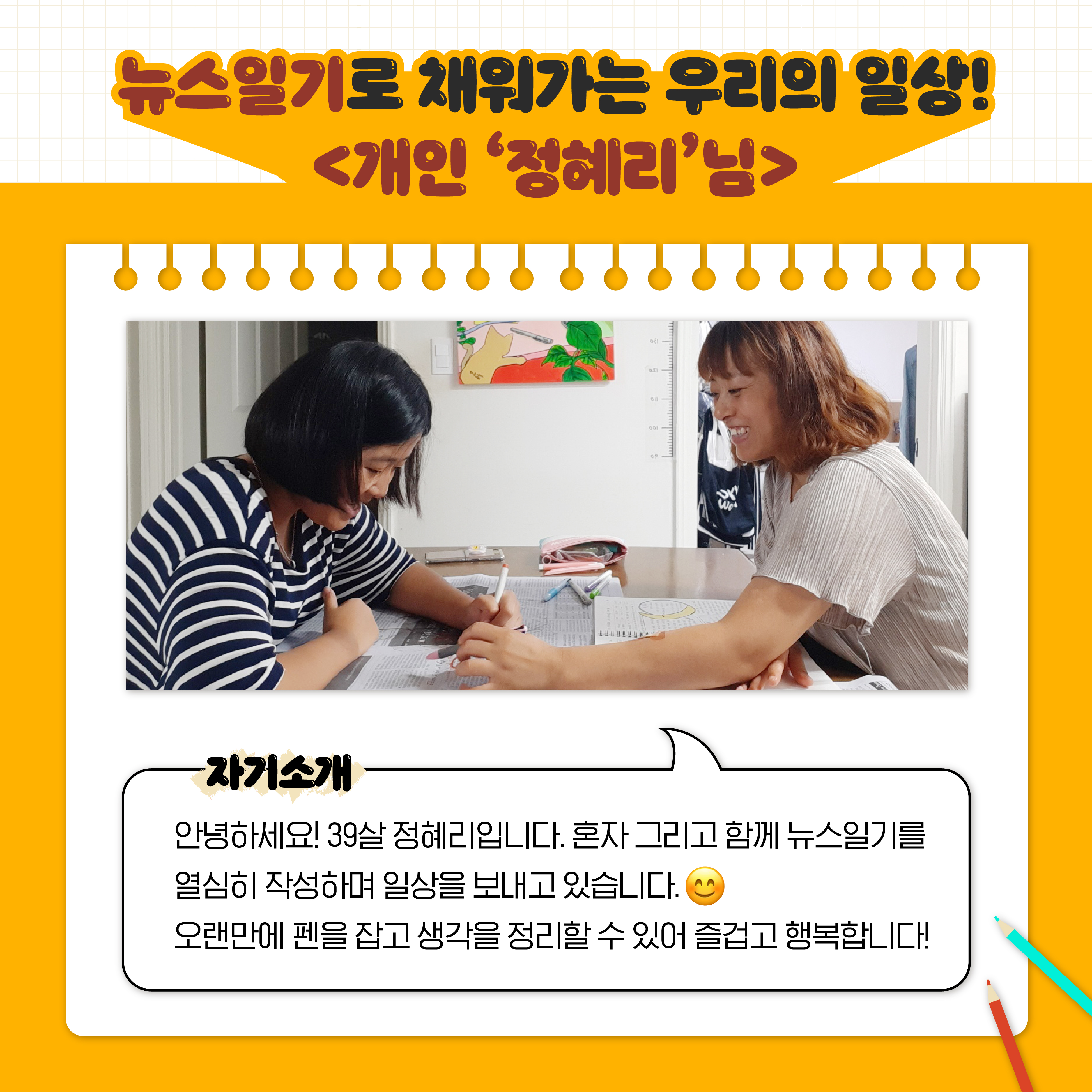 뉴스일기로 인해 펜을 오랜만에 잡을 수 있어서 행복하시다네요~!