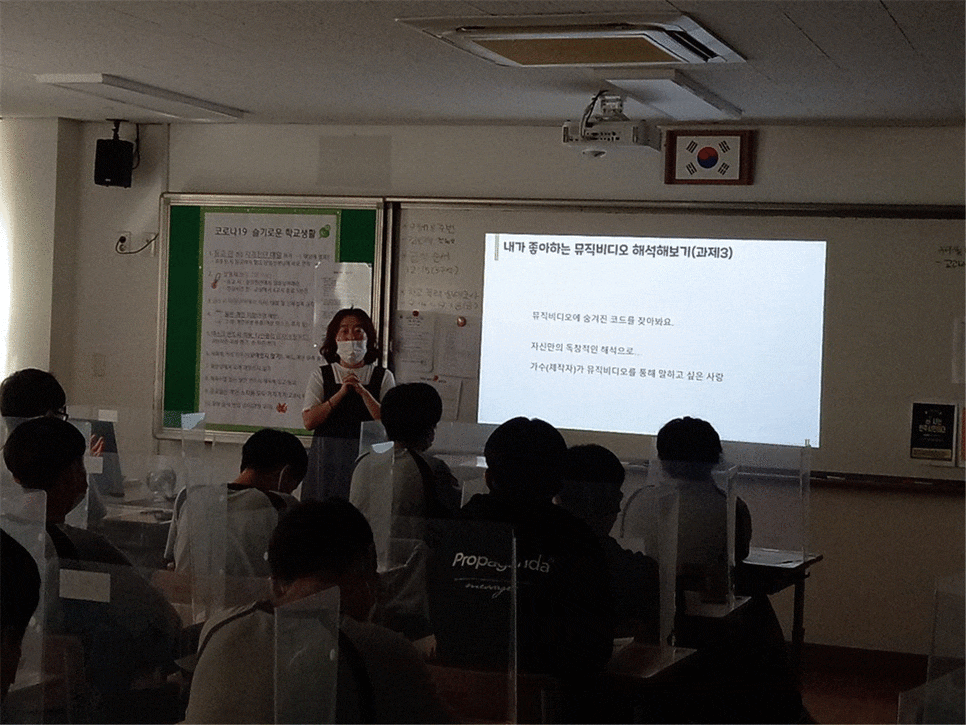 도덕 교과에서는 <성과 사랑> 단원 중 ‘사랑에 대한 나의 정의 내리기’ 학습 과제를 뮤직 비디오 분석을 통해 해보았습니다. 뮤직 비디오를 선택한 이유는 아이들에게 가장 친숙한 미디어이고 책이나 다른 미디어에 비해 진입 장벽이 매우 낮다고 판단했기 때문입니다. 또한 뮤직 비디오는 다양한 서사를 담고 있기에 아이들이 개인 취향에 맞는 뮤직 비디오를 선택할 수 있다는 장점이 있습니다. 아이들에게는 좋아하는 가수의 뮤직 비디오를 실컷 감상하되 진지한 자세로 임해달라고 부탁했습니다. 이 과제에는 정답이 없다는 점도 강조했습니다. 아이들은 이 수업을 통해 뮤직 비디오의 역사, 특성, 산업뿐 아니라 뮤직 비디오를 구성하는 음악과 영상 간의 관계, 그리고 유튜브라는 거대한 플랫폼과의 연관성 등에 대해서도 배울 수 있었습니다.