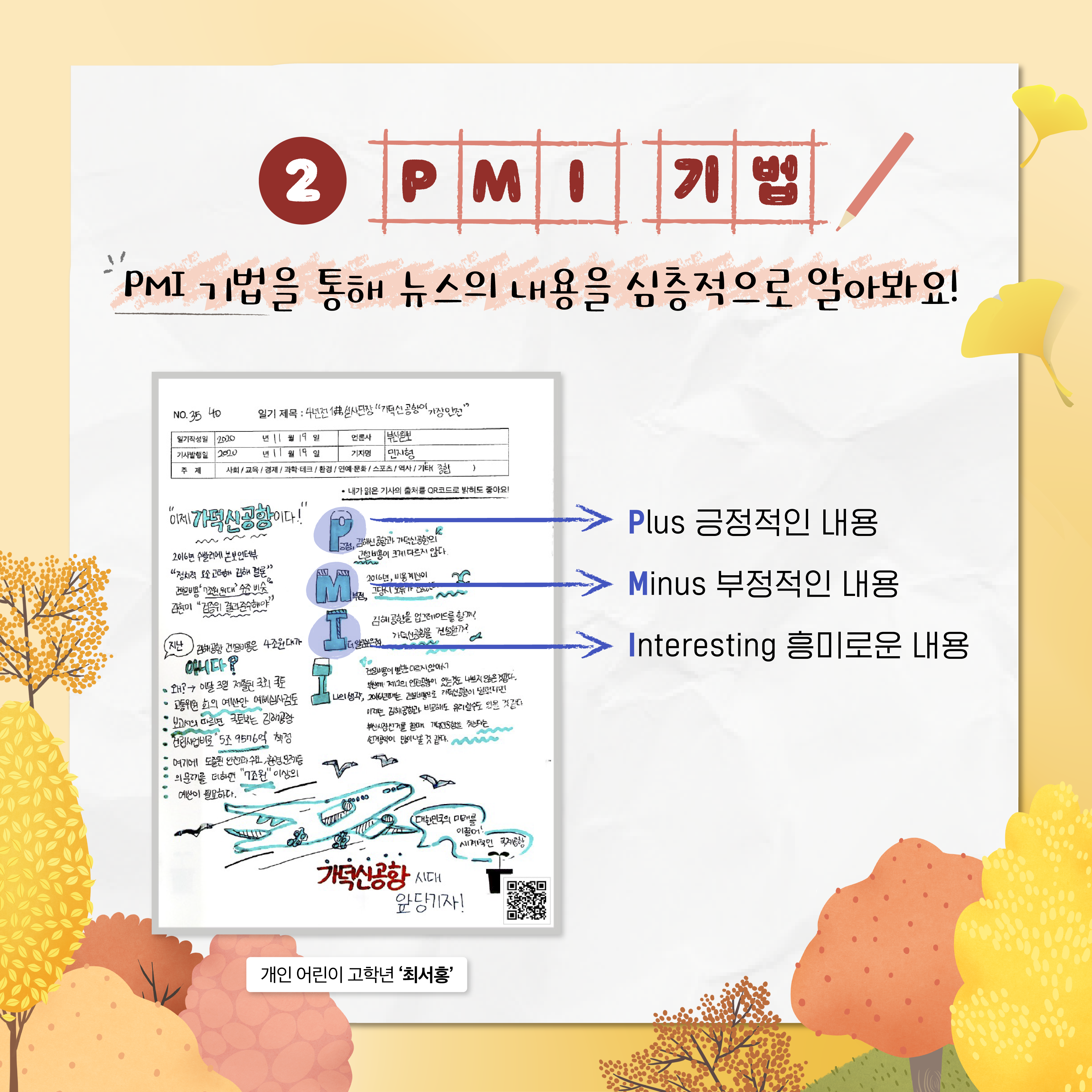 두 번째 방법은 PMI 글쓰기 기법을 사용하는 거예요!