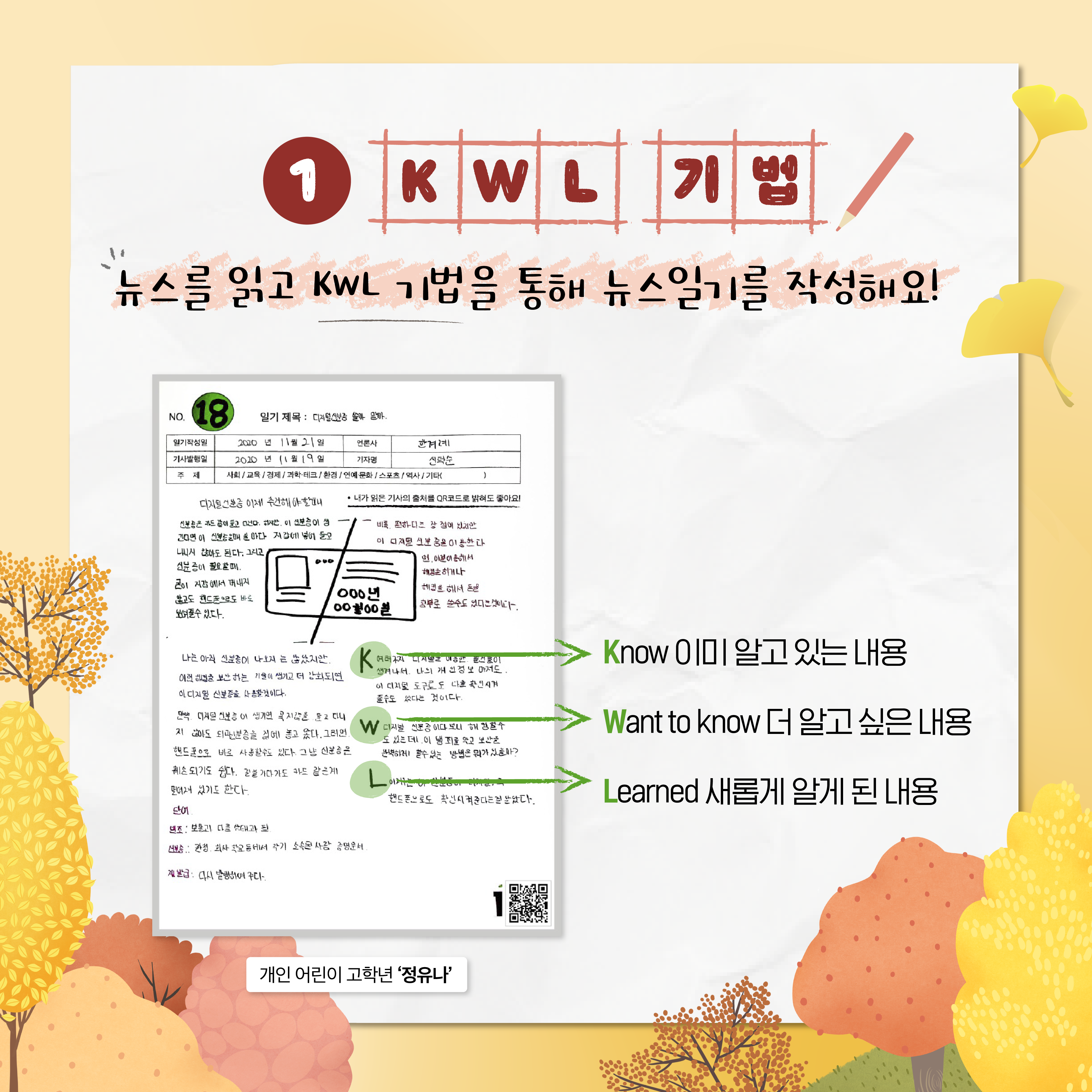 KWL 기법으로 내용을 정리하다 보면 기사를 확실하게 이해할 수 있어요.