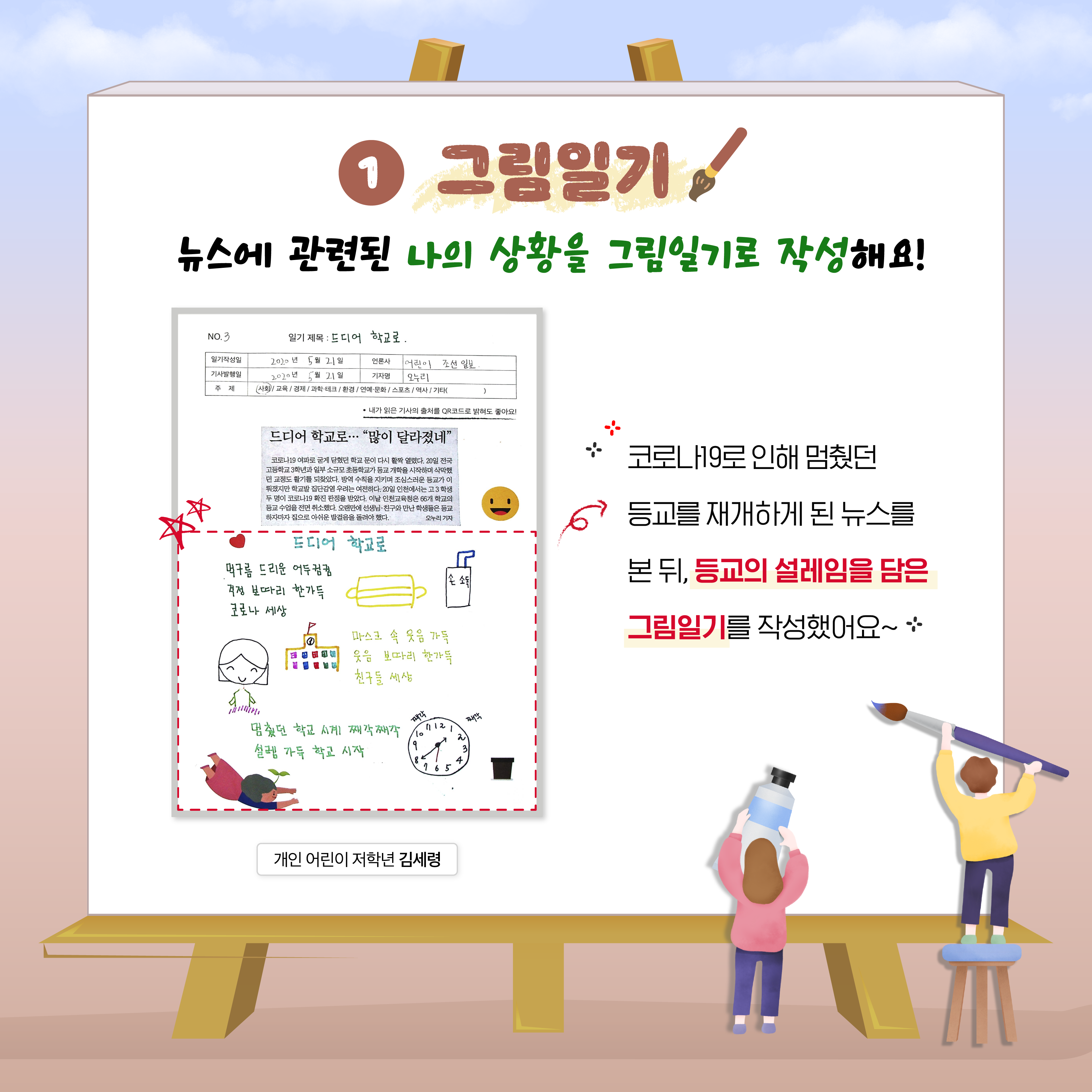 뉴스일기에 마음껏 그림으로 표현할 수 있어요!