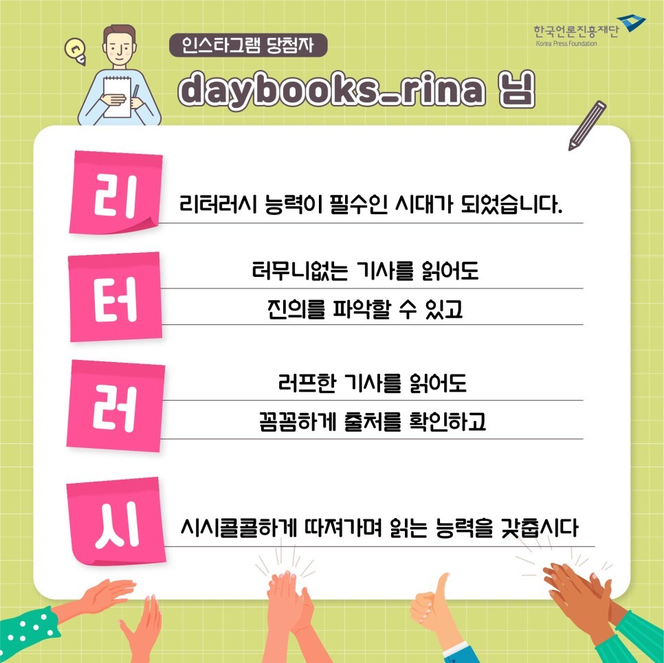 < 인스타그램 당첨자 / daybooks_rina 님 >